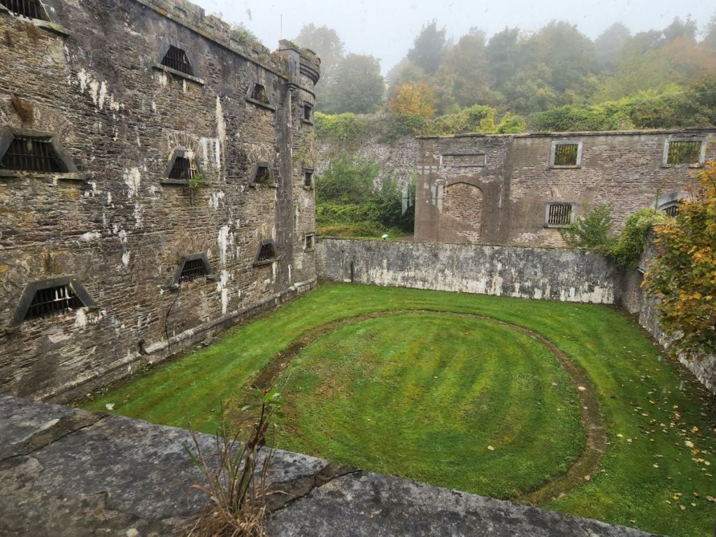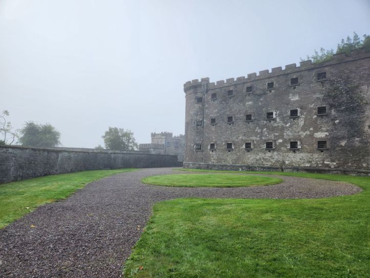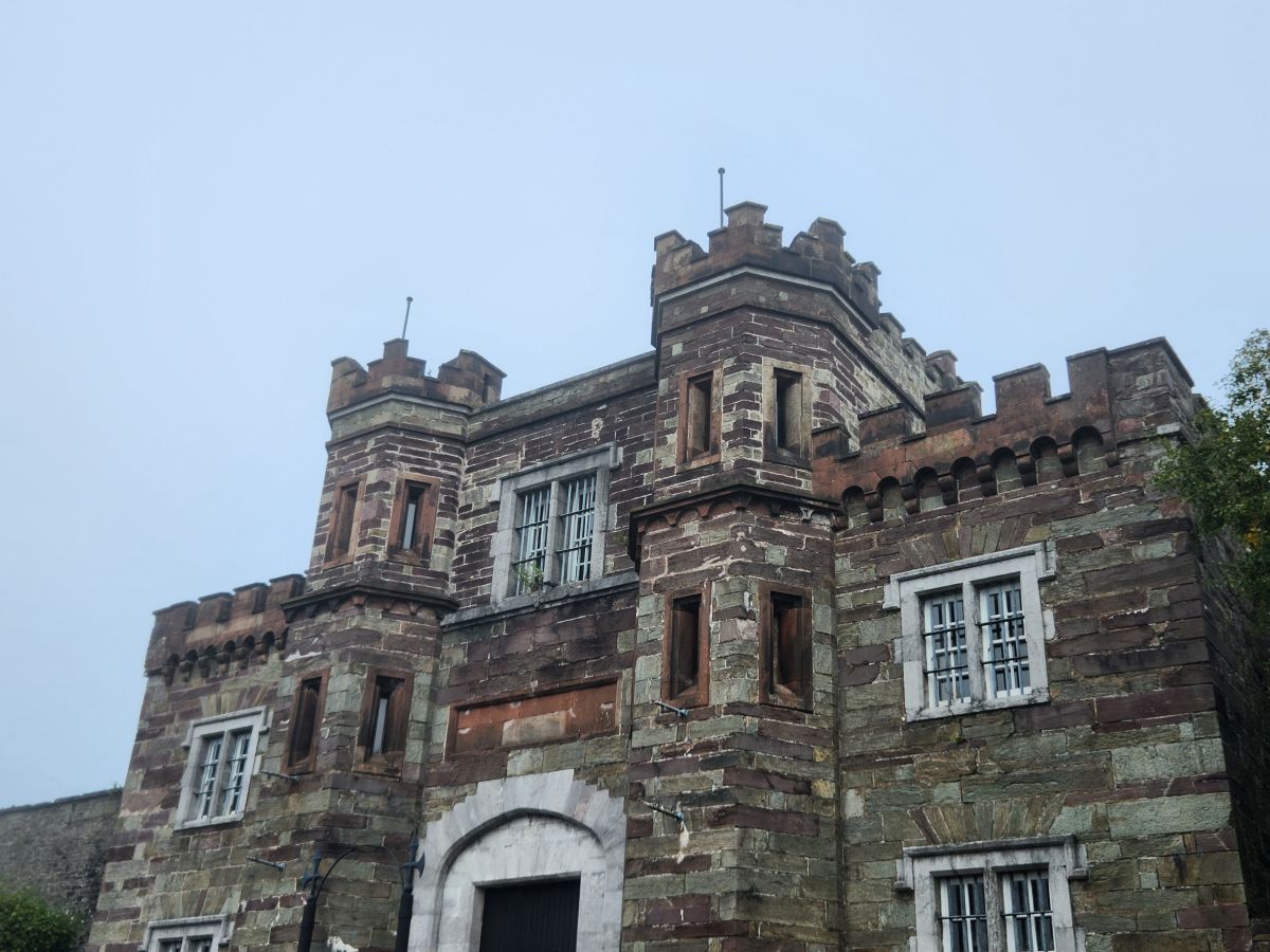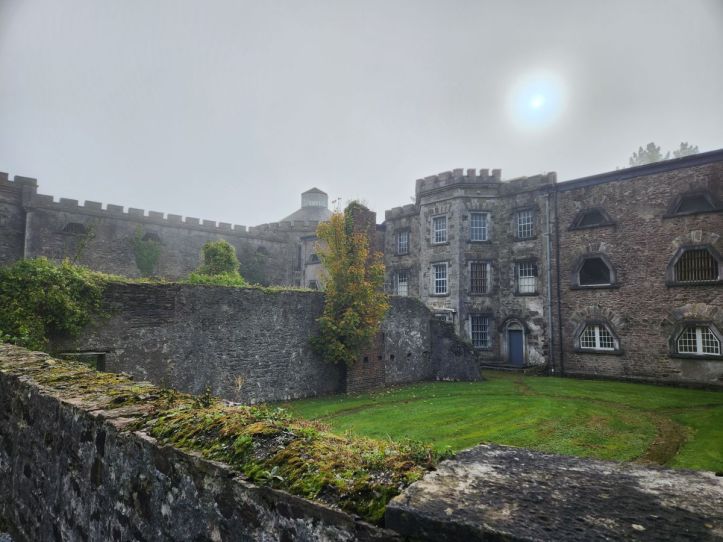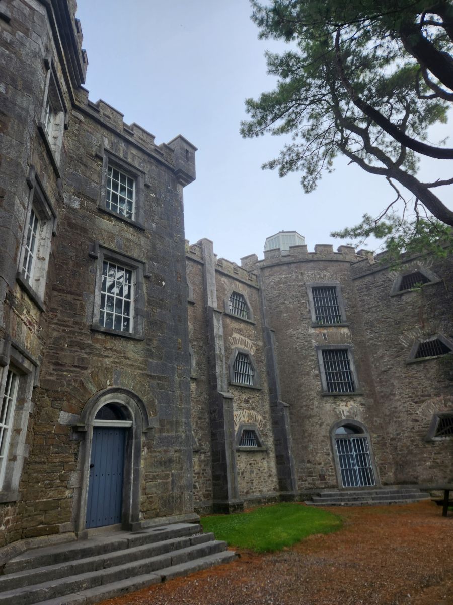 Pressing on, we reach the Gaol right after opening time, entering through the hulking gate building and walking up into the lush green Governor’s gardens that surround the Gaol. Now this place looks like an old Victorian era gaol. It is huge and sturdily built, but so obviously old and out dated. Not like the Gaol in Belfast which seemed almost modern. Even here in the gardens, the building just towers over you, almost threateningly. Gorgeous stone and an excellent example of 19th Century Cork architecture, it was built in 1824 and used as a gaol until 1923.