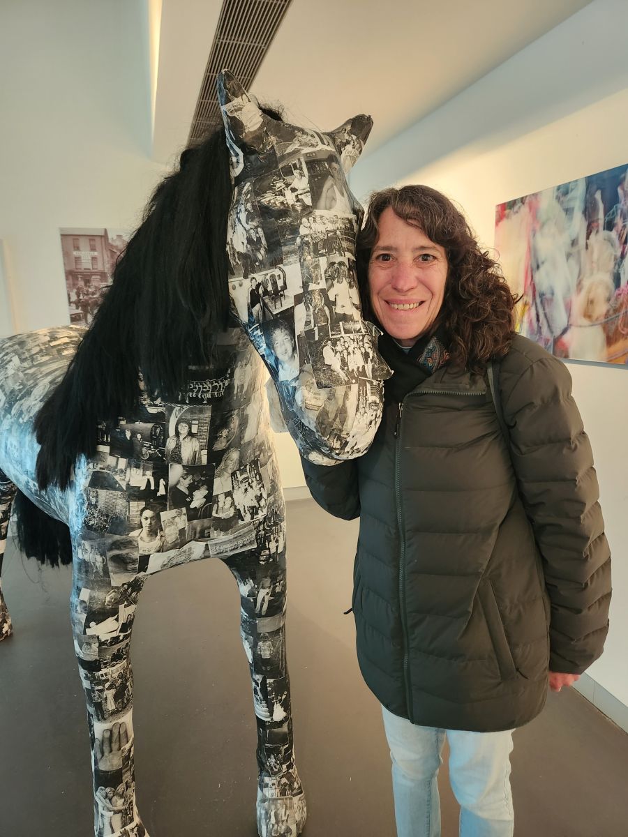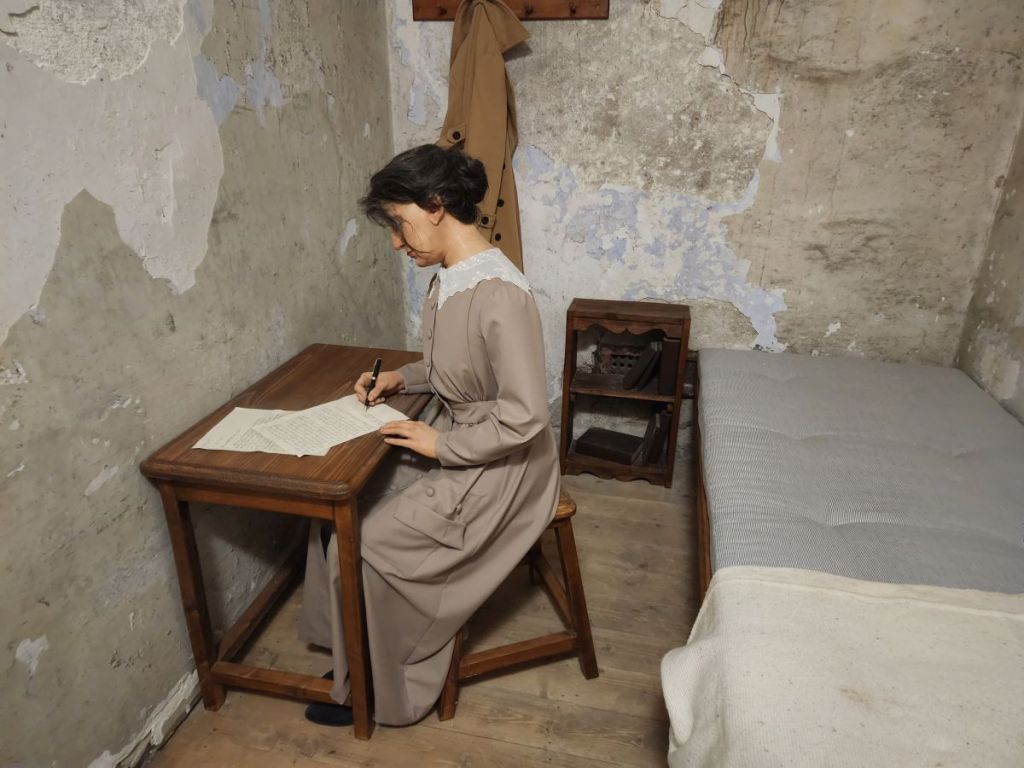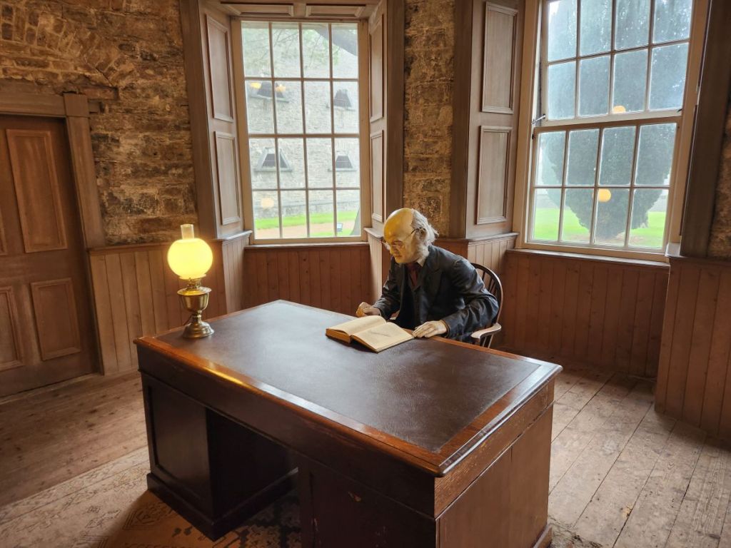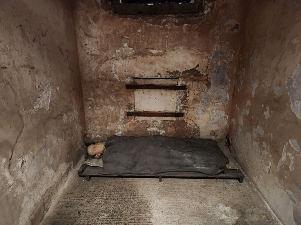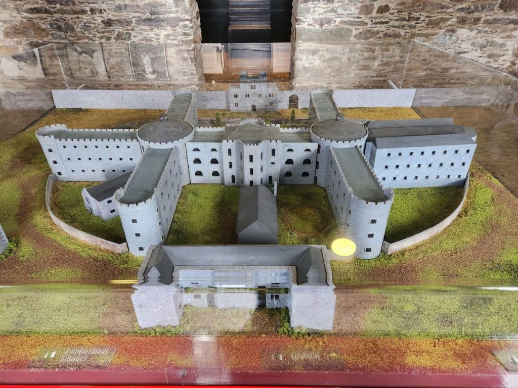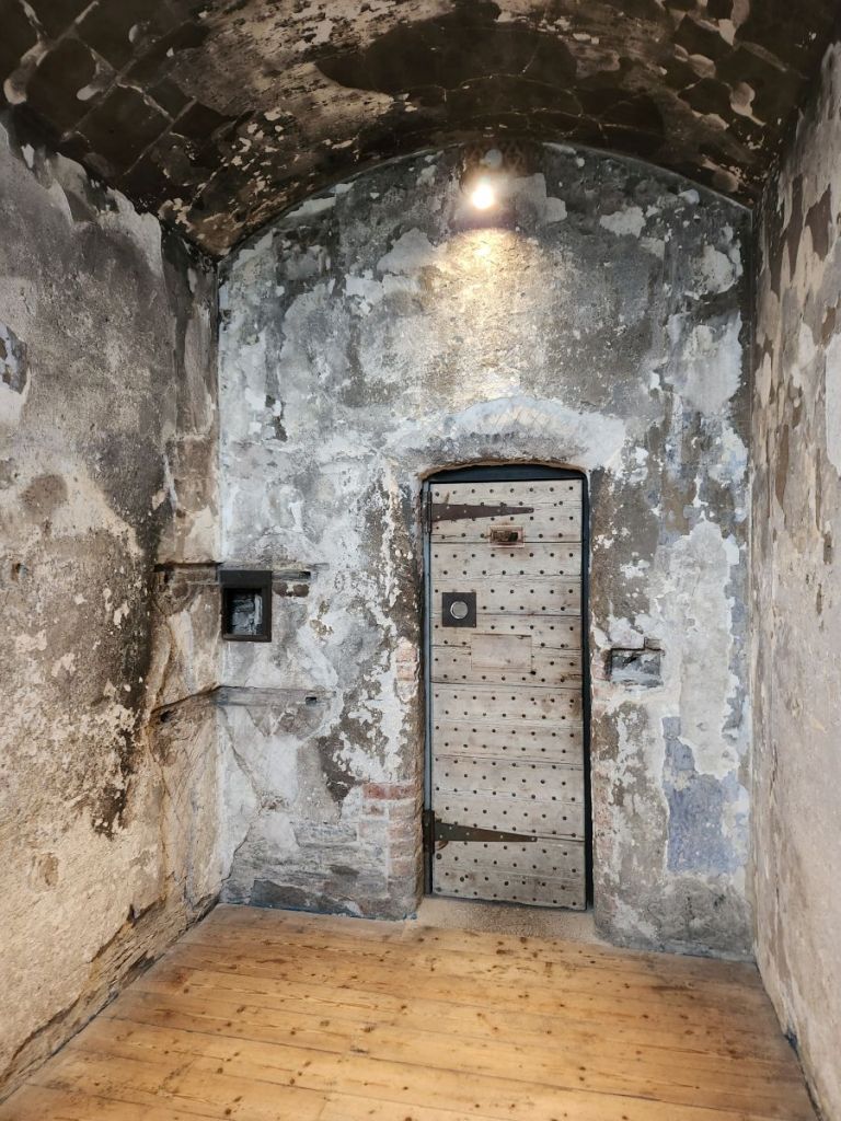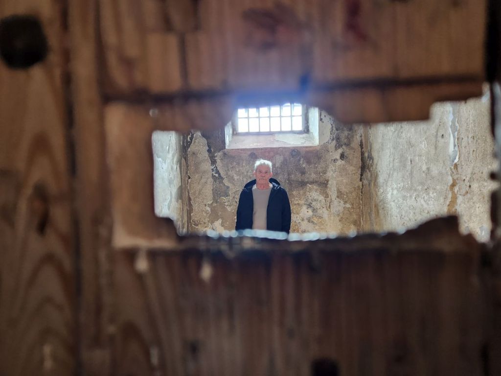 There is a cell we can “try out” – which of course we do! And original graffiti that has been preserved from prisoners during the Irish Civil War. As we climb to the 2nd floor, we can look out the windows and see the exercise yard where prisoners walked around the designated circle in single file so they couldn’t talk. There is a room explaining all the different punishments meted out; oakum picking (a short of endless unraveling of oakum ropes that left your hands bloody and raw), the treadwheel (literally a human-size hamster wheel only with heavy weights to make it harder), of course solitary confinement and whipping, but also clothes confiscation (if a prisoner tried to escape, their clothes were taken from them to deter further attempts)! Plus there is a great model of the entire prison providing a perspective on how large the entire complex is.