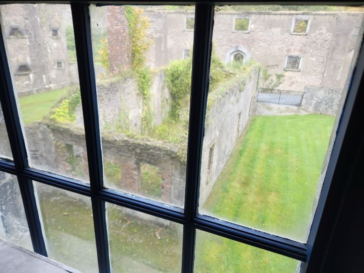 Upstairs there is a radio museum, which showcases all the old equipment from the 1920’s when Radio Eireann began broadcasting in the main building after the Gaol closed. The radio station remained for about 30 years, then the building was used by the Department of Posts and Telegraphs as a training school. From the radio museum, we follow the winding staircase down and out onto the Gaol walkway, which runs all the way around the buidlings. Out here we are treated to the sight of the ruins of the Kitchen and teh hospital buildings, all falling down with various plants and creatures living inside. There is also the debtor’s Gaol, a completely separate building just for those who couldn’t repay their debts.