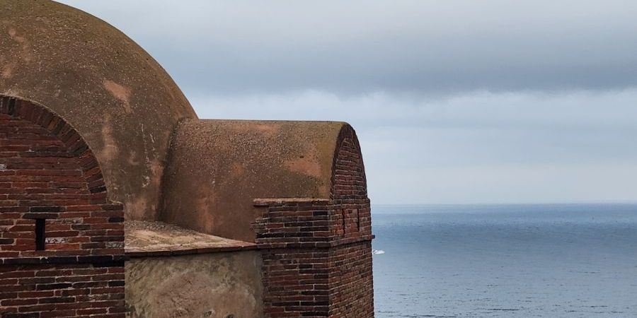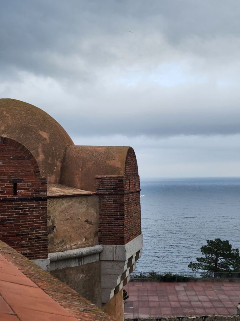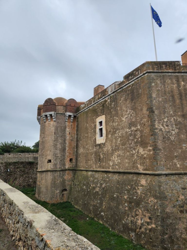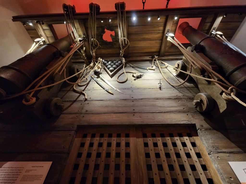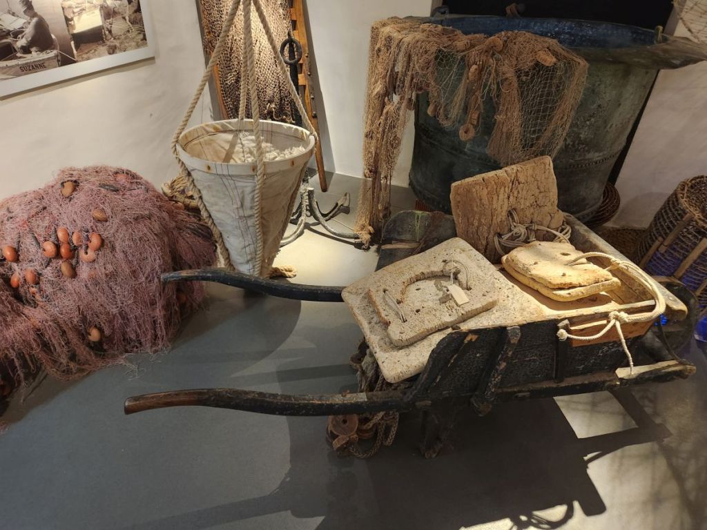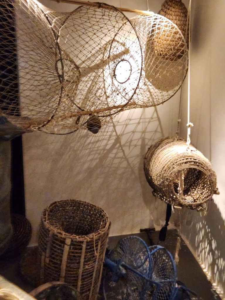 The views are great from up here – you can see all around, including our ship (under the watchful eye of the cannons – one wrong move and we’ll blow you to smithereens – LOL). Inside the museum area, there are 2 floors of very interesting displays all about fishing, fishermen, military and the defenses built up on the coast. Plus there is a rooftop viewing area that has even more beautiful views across the water and hillside. Quite the nice little visit.