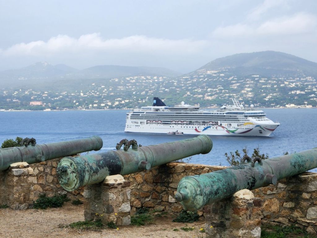 We’ve been all around the French Riviera, but never here. So, we have mapped out a totally Ed and Cathy day today. Because of course, you all know we are not the beachy, see to be seen resort types – so we’ll be doing interestingly odd things. Sadly, it is a tender port, and that is one thing in which this particular ship does not excel. But we do manage to somehow find a sweet spot between tours and get a tender right away (albeit in the very front bench seat where you have to watch you don’t knock yourself out on the window handles with the bobbing of the tender). Thank God it is a quick trip into the pier and we can get off that thing relatively quickly and unscathed.
