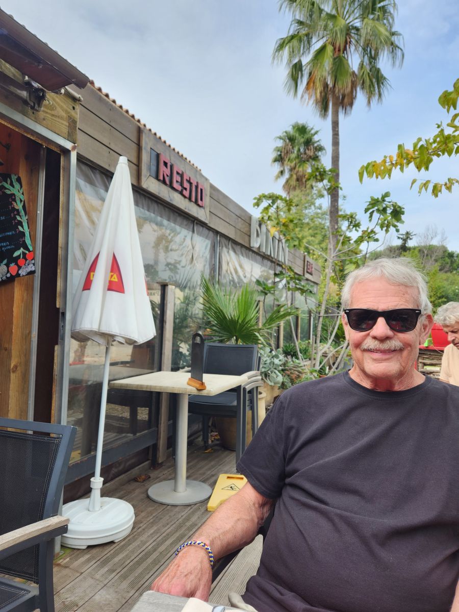 Now it is time for lunch – and being St. Tropez, well, it is crazy expensive (have I mentioned the window display with a lady’s outfit – blouse, jacket, pants, purse and shoes – that cost 14,000 Euros!!!! Crazy) – so of course, we are doing the Ed and Cathy thing and walking to the main road on the opposite side of town to Le Bikini, a restaurant Ed has found that has a good menu and decent prices.