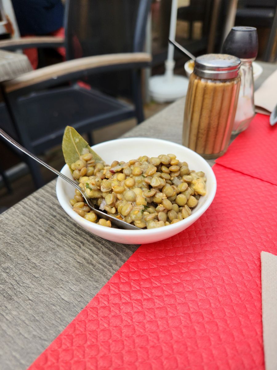 Even though I’m the only woman there except the waitress! This is thoroughly a working man’s restaurant – everyone else in here is some sort of worker – all the cars in the lot are work vans. And you can see why – the food is excellent and well-priced – they have a prix fixe menu for 17 Euro with a lamb stew, white rice and salad plus dessert. How can you go wrong? You can’t! Even the wine and beer are well priced.
