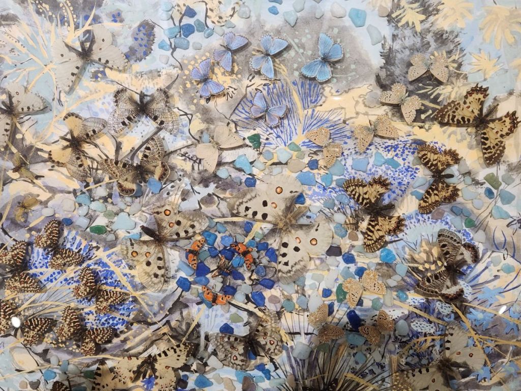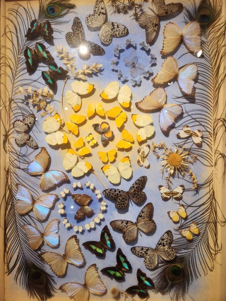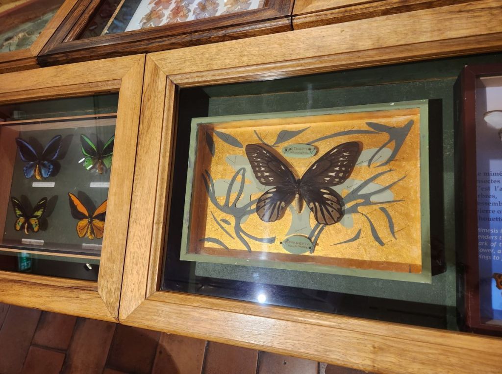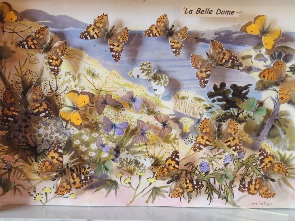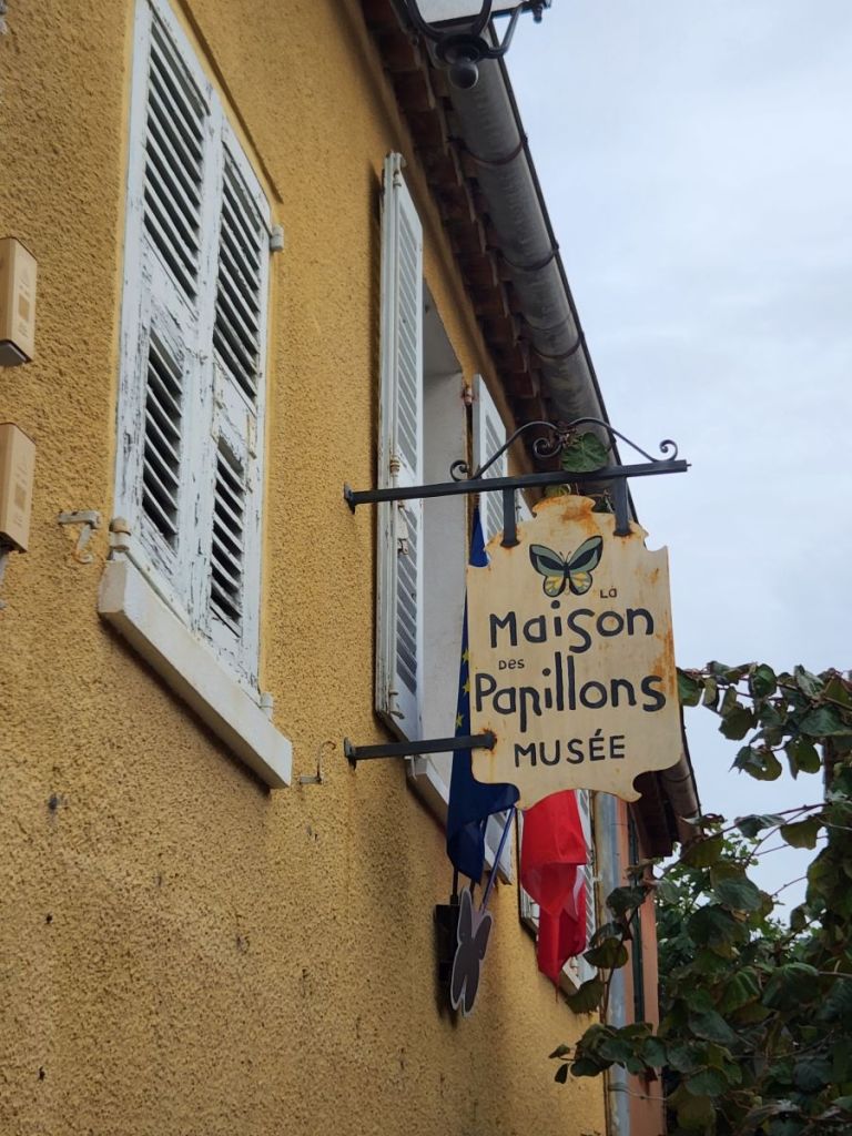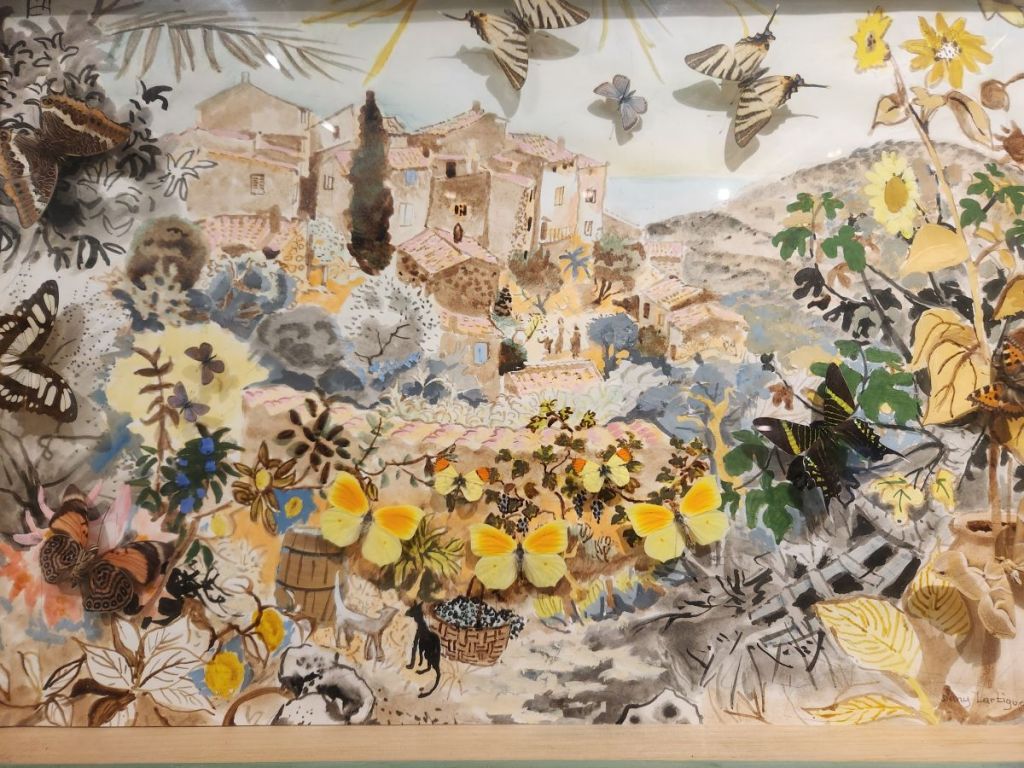 The 2nd floor though is the best – here we find a selection of Dany’s work and a video that explains why he has created his art in this way. He loved gardens and gardening and would paint Provencal landscape scenes. While he was outside painting, butterflies landed on his painting. He tried to capture their beauty in his paintings but could never get the detail he desired. Then he had an inspiration – as the butterflies came to visit him and landed on him and the painting, he decided he would capture the butterflies and literally put them into the paintings. There are about 50 of these paintings hung on the walls and displayed on shelves – each intriguing and interesting and beautiful in their own way.