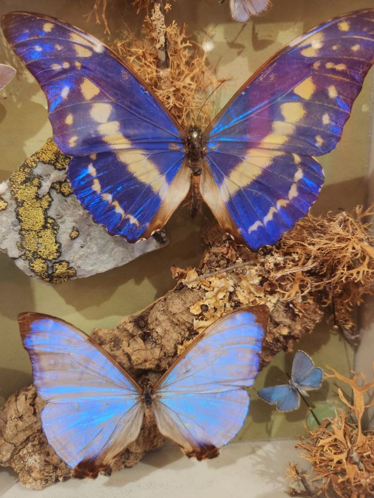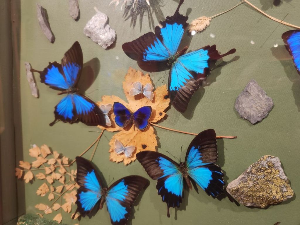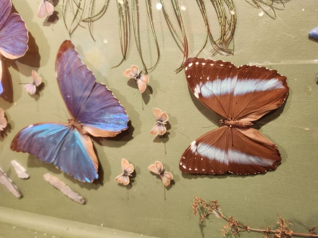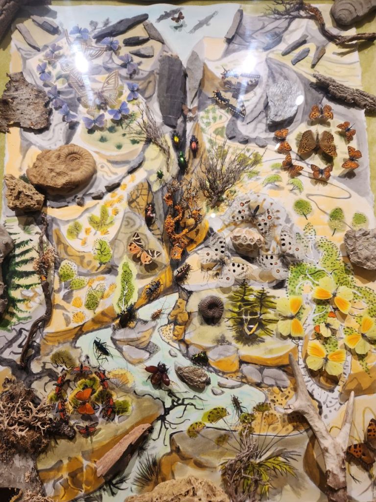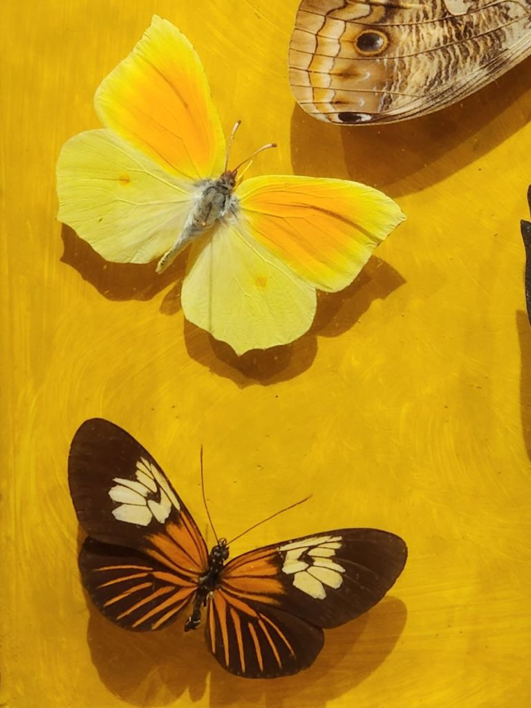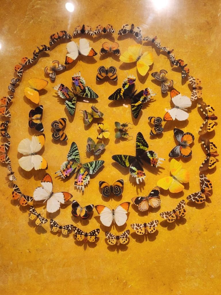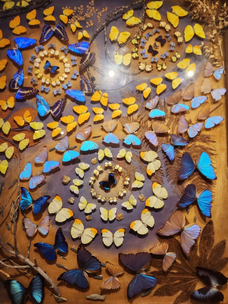 The 2nd floor though is the best – here we find a selection of Dany’s work and a video that explains why he has created his art in this way. He loved gardens and gardening and would paint Provencal landscape scenes. While he was outside painting, butterflies landed on his painting. He tried to capture their beauty in his paintings but could never get the detail he desired. Then he had an inspiration – as the butterflies came to visit him and landed on him and the painting, he decided he would capture the butterflies and literally put them into the paintings. There are about 50 of these paintings hung on the walls and displayed on shelves – each intriguing and interesting and beautiful in their own way.