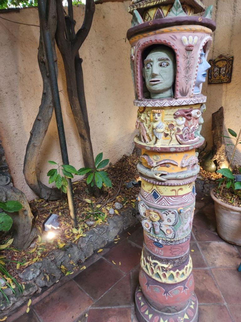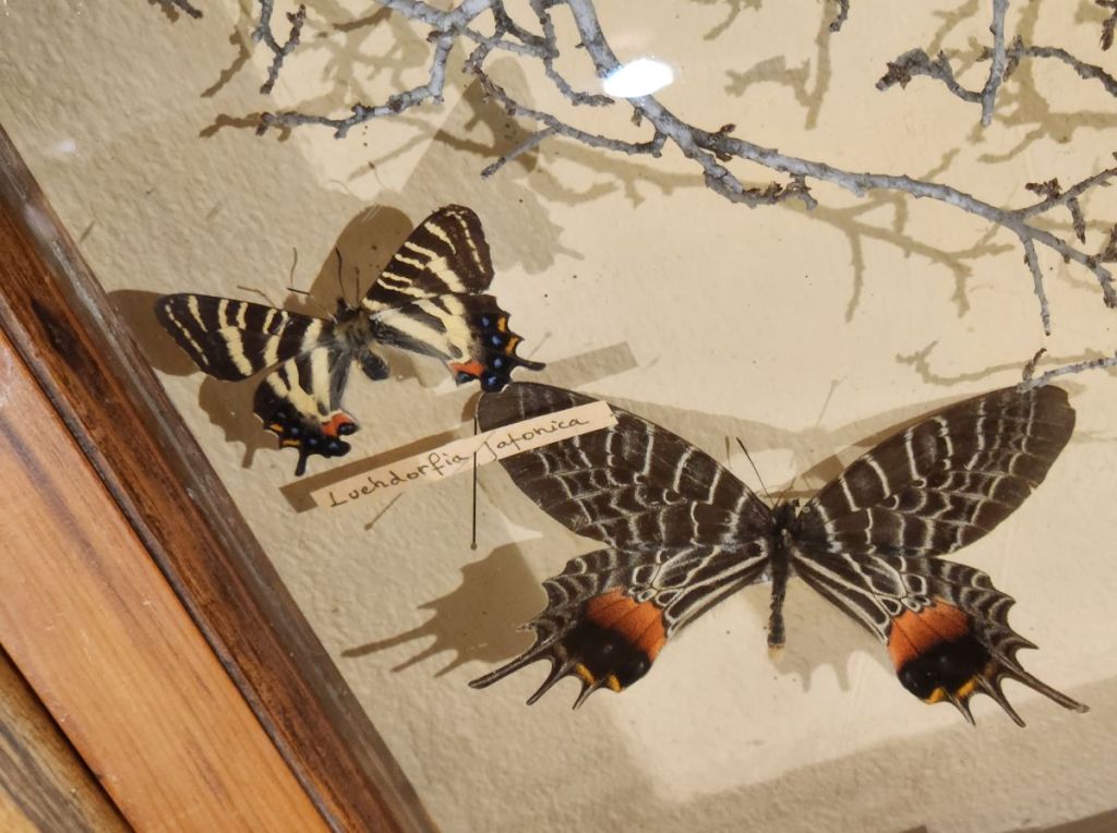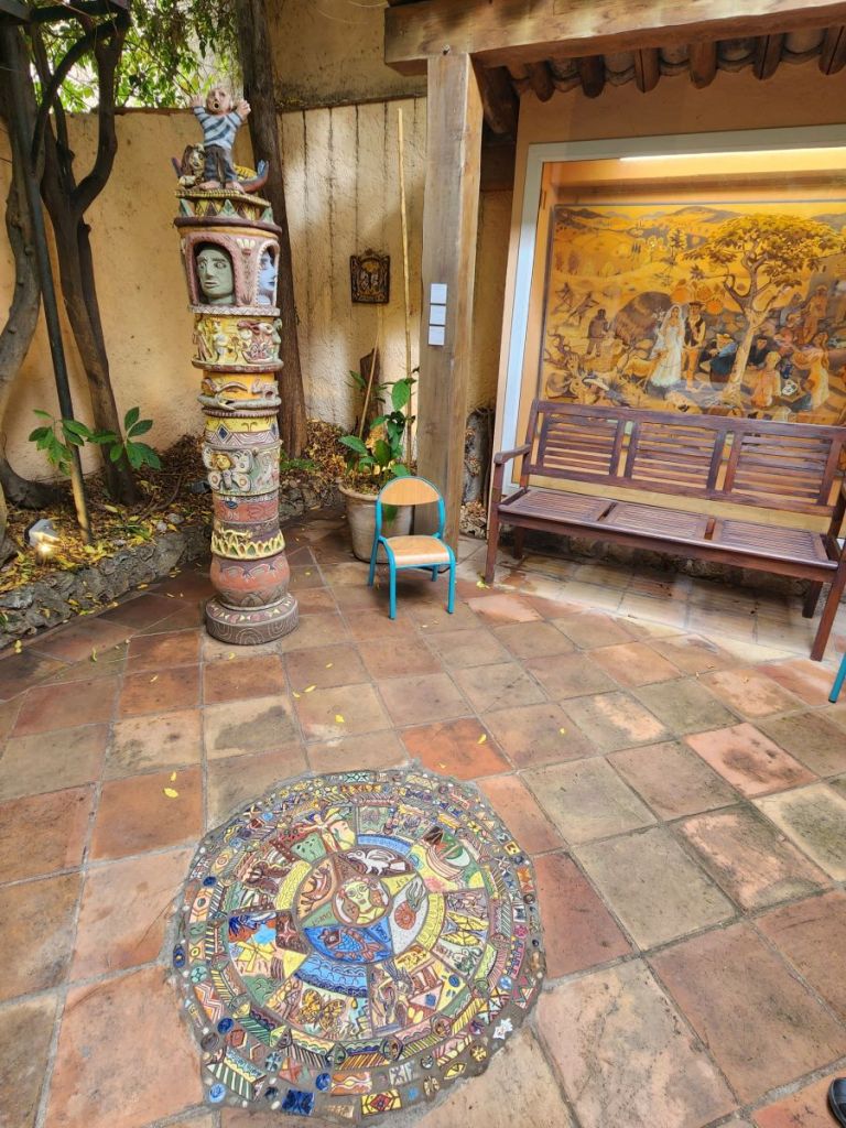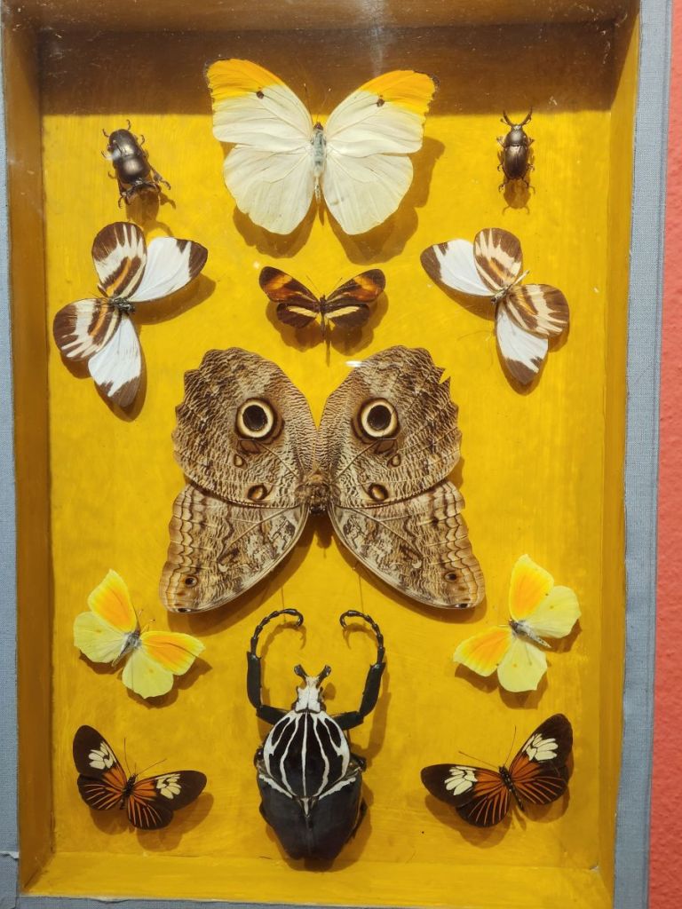 Arriving back at the museum (which is located down a little alleyway with butterflies stamped into the pavement), they open right on time and we are let into the magical world of butterflies. Located in the home of Dany Lartigue, an “amateur enthusiast” who was both painter and entomologist, the first floor holds a collection of tropical butterflies, all collected by Dany who was fascinated with butterflies. There are loads and loads of specimens, each more beautiful than the next. And totally intriguing – like the butterflies that are camouflaged to look like leaves. Outside on the ground level is a sweet little patio with a totem pole and somewhat Aztec-ish tile inlay on the stone patio floor. The museum curator said we could come sit outside there, but there is no café there anymore (at least that’s what I think he said in very heavily accented English).
