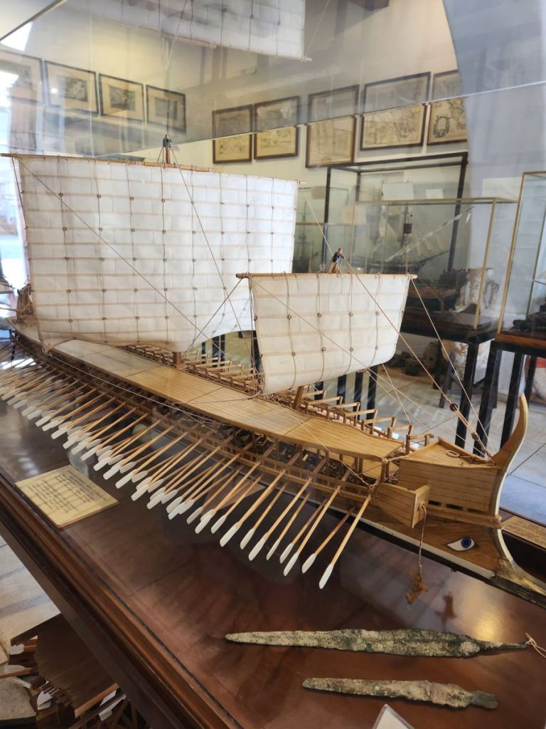 Reassured, we head back to the museum which opens right on time. It is a sweet little museum with 2 rooms and lots and lots of models – mostly of the Venetian ships of old, with the 170 oarsmen situated on 3 levels. The detail is amazing. The best part though is a little garden area outback with a lighthouse light and lots of different statuary and nautical items. It’s such a lovely day, spending time outdoors wandering through the garden is perfect.