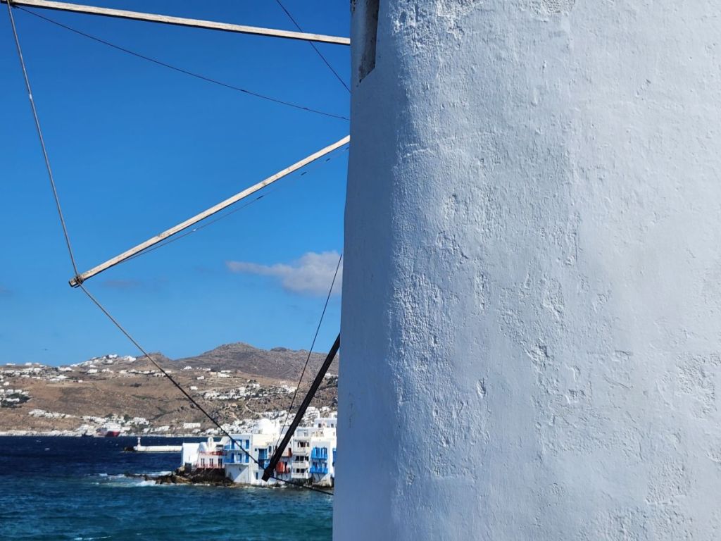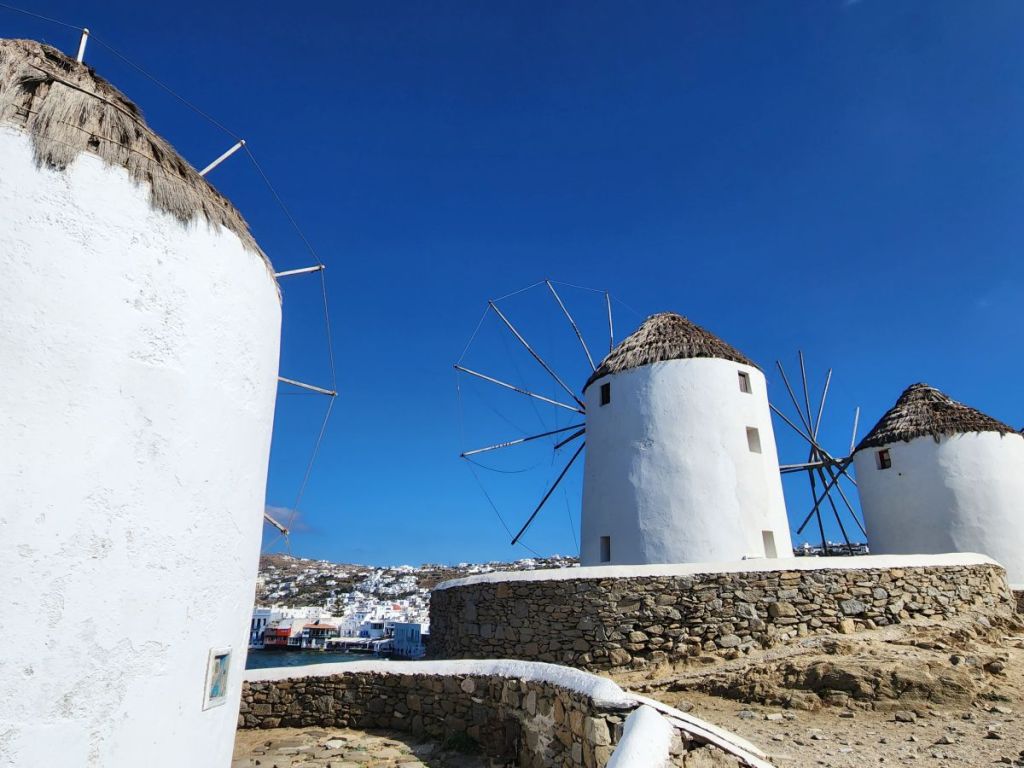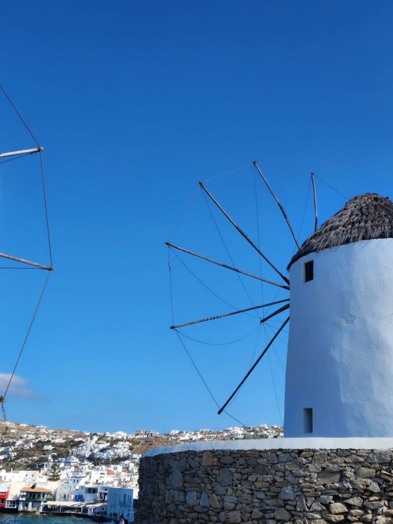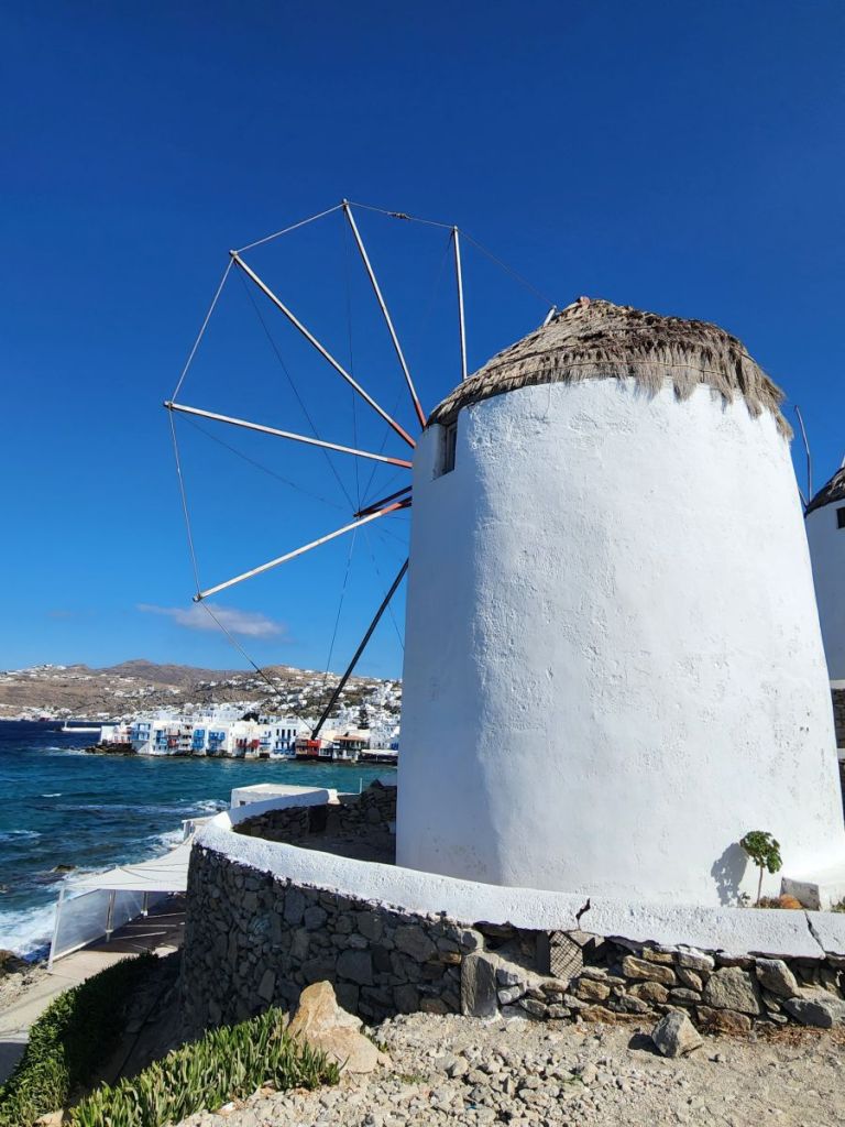 Since we are close, we walk to the windmills – why not? A visit to Mykonos requires a windmill photograph. Dodging all the other ship people, who really are not polite in terms of picture taking and then take for-freaking-ever to take the shot, we manage to snap some decent photos of the windmills and Delos across the water.