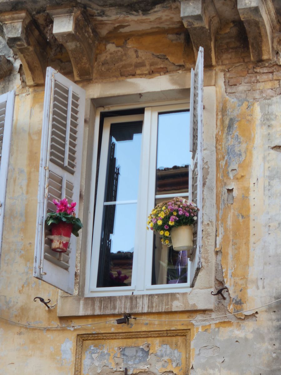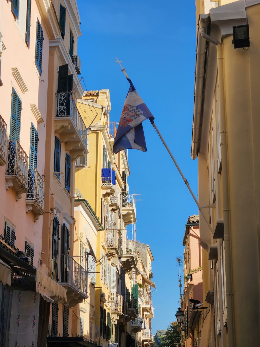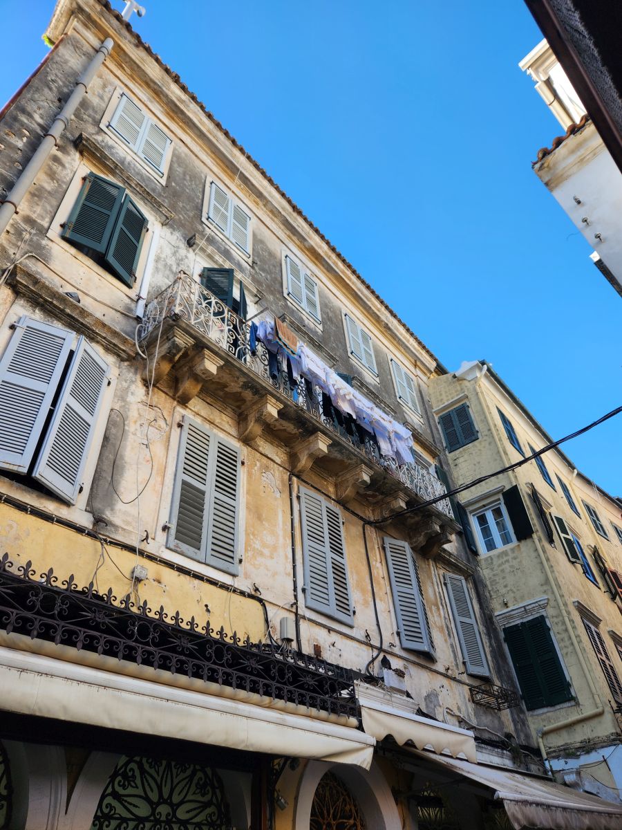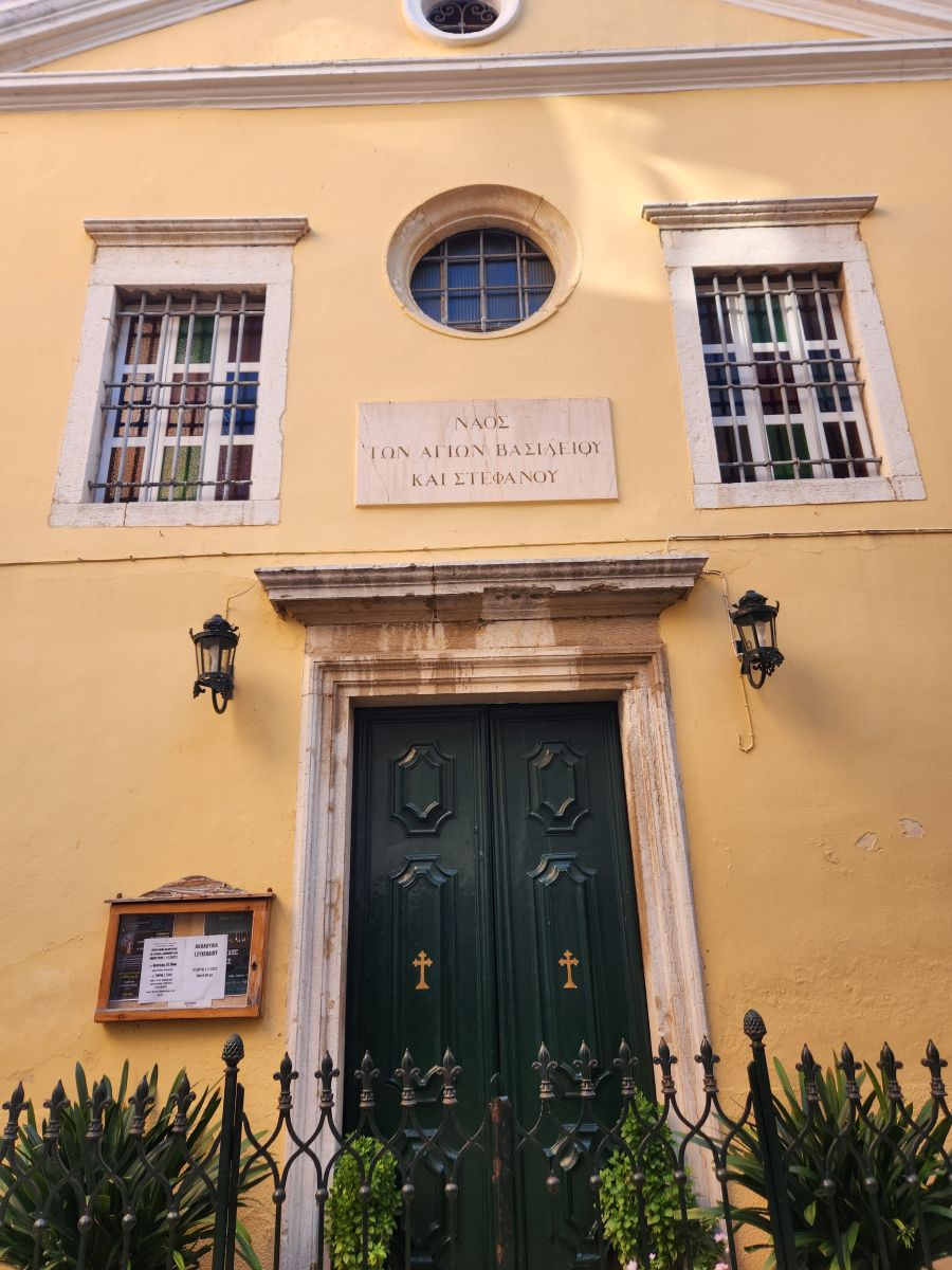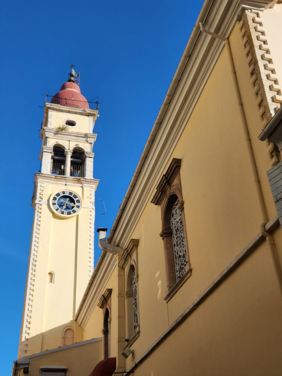 Now we are just wandering around town, snapping pictures of the interesting looking buildings, churches and streets. We stop at the Holy Church of Saint Spyridon, marveling at the amazing frescoes (but not being allowed to take photos in the church)…