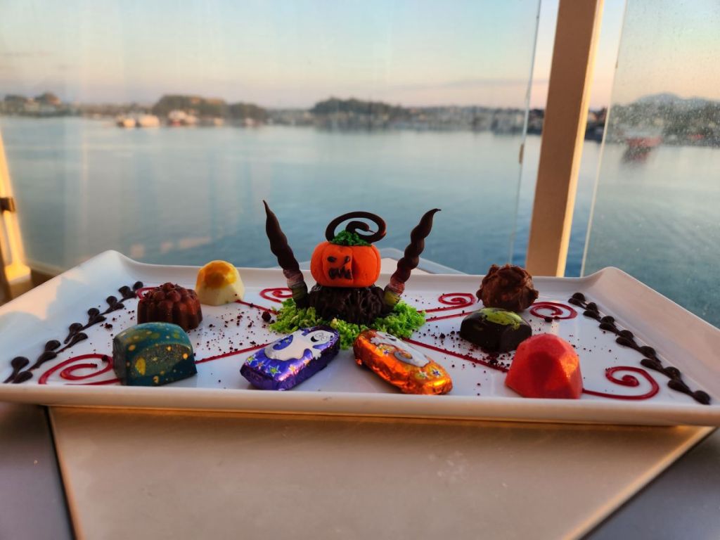 Arriving back to the cabin we find the cutest Halloween chocolates! They are the most creative things! Have no idea why we got them – but we love them and don’t want to eat them they are so pretty! That will be our sea day snack tomorrow.