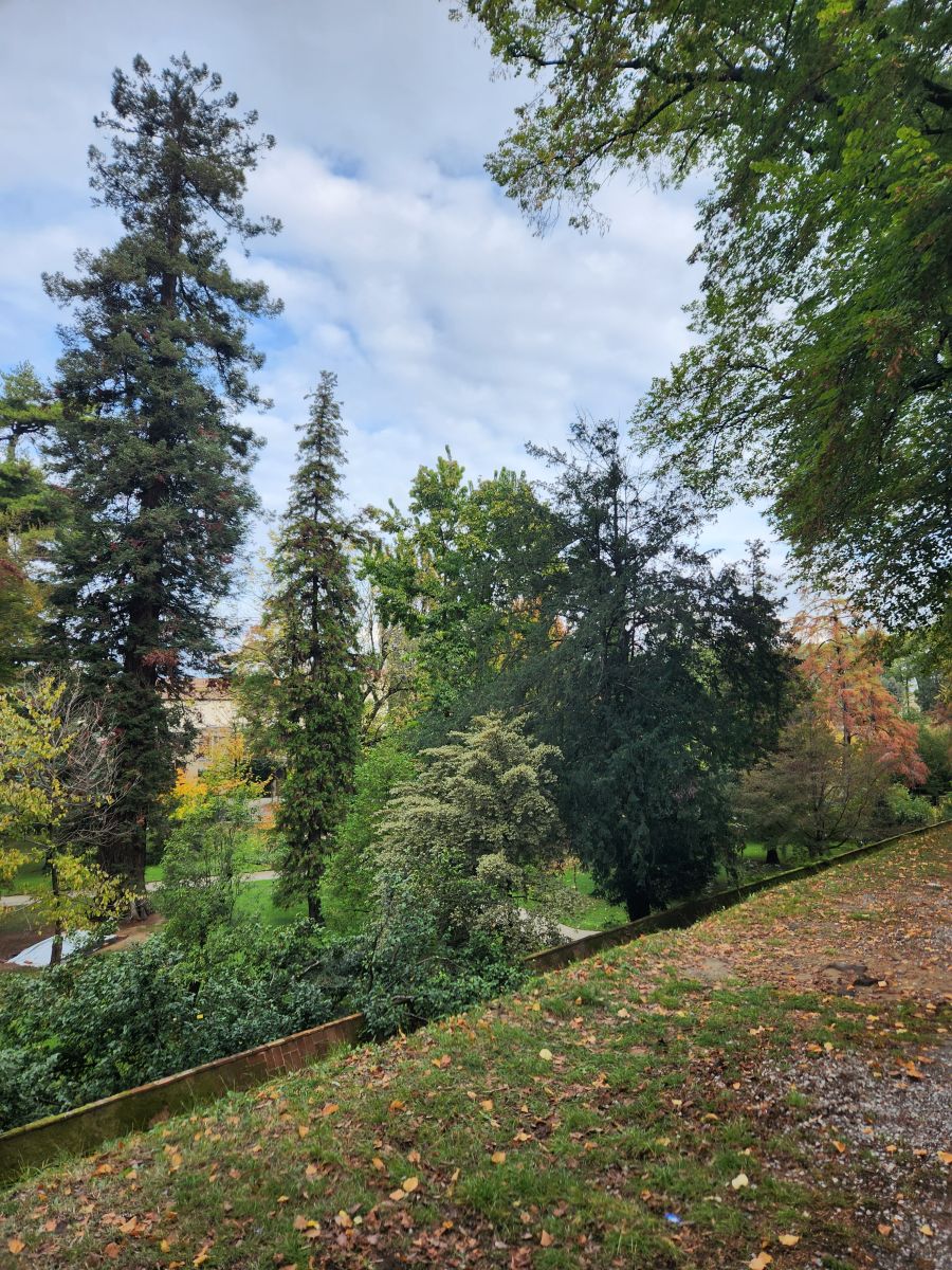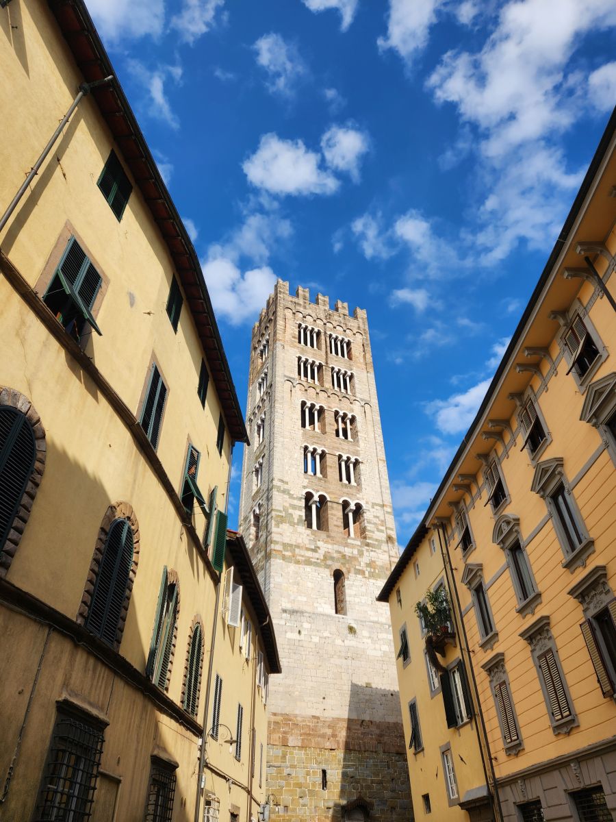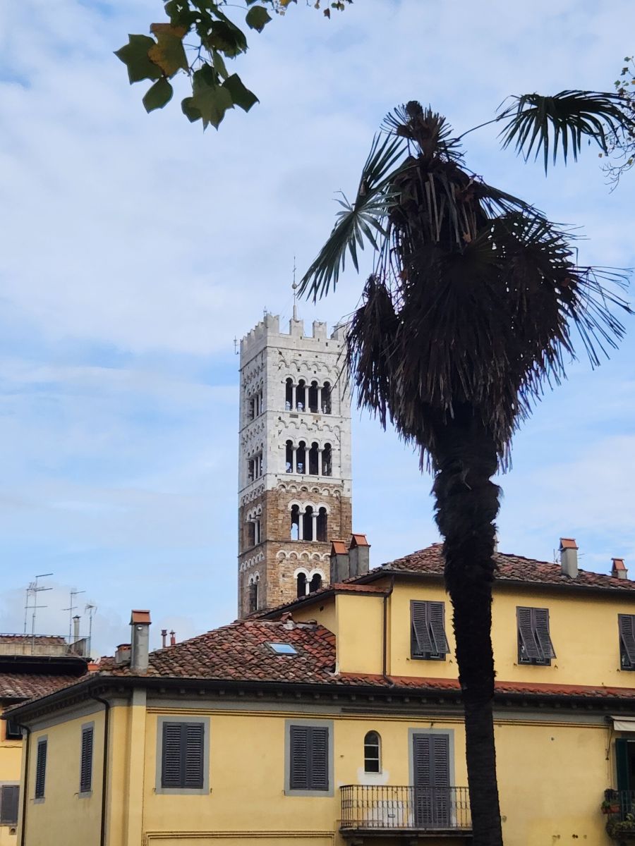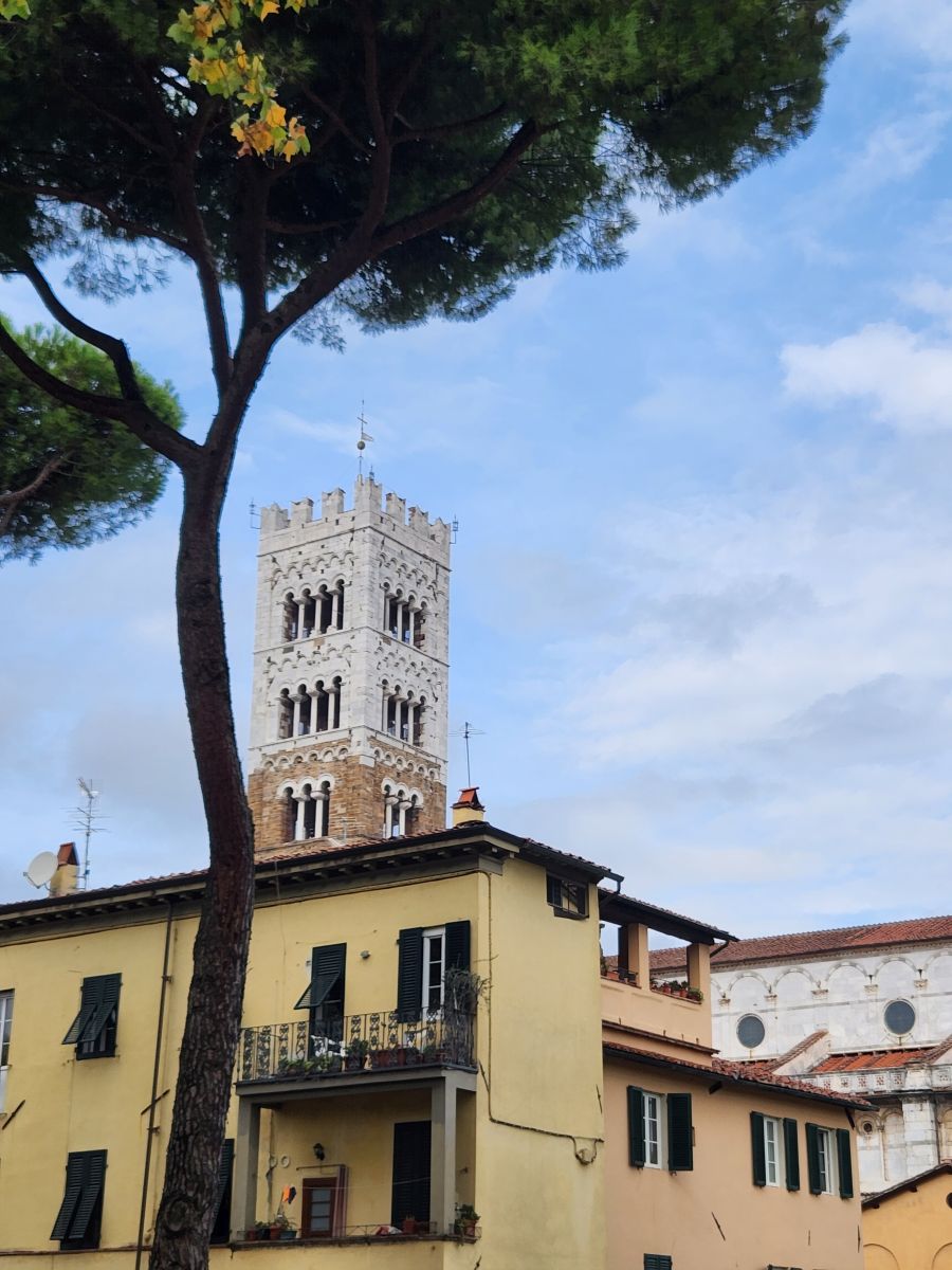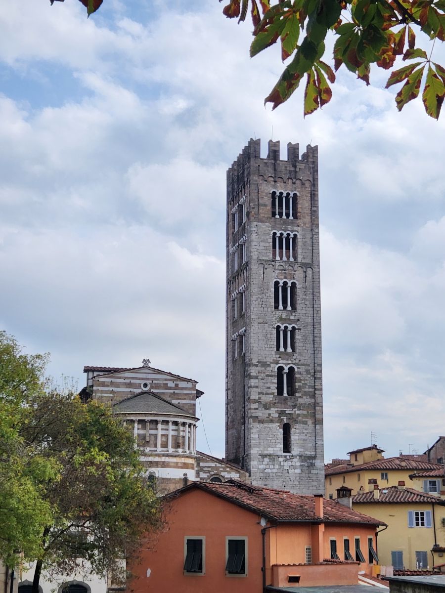 It is a beautiful fall day to be walking the walls. Falling leaves with vibrant colors line the wide walkway atop the walls that circle Lucca. From up here you can see the beautiful architecture within the town, as well as some of the older structures that are more ruins than fixer uppers. And of course, all the fortifications of the old city walls are eye catching and photogenic in the pretty fall colors.