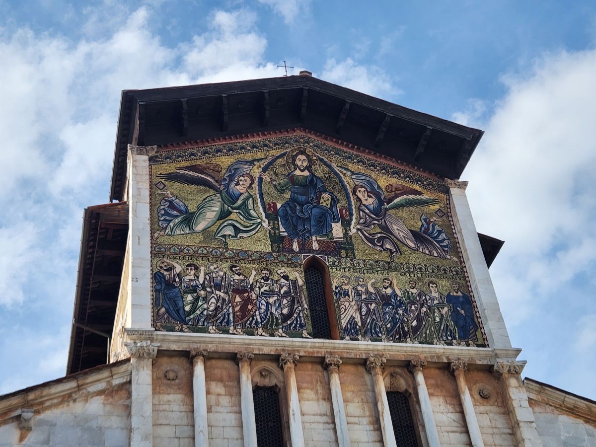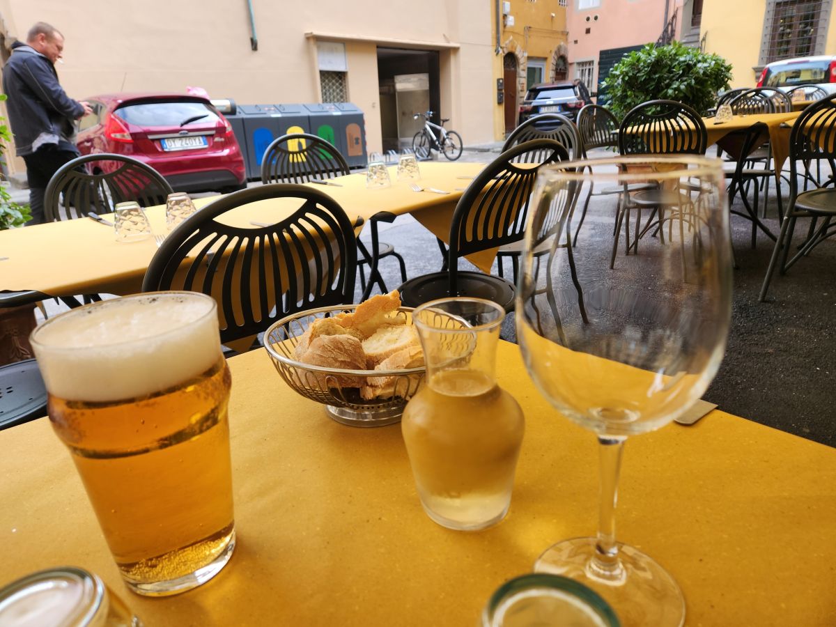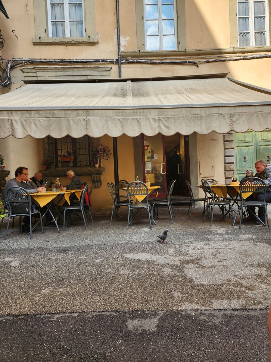 Finishing our walk, we pass by Tavola again, but sadly, the sign is still there, meaning we are on our own for lunch plans. Not a problem as there are plenty of choices here, but still a disappointment after looking forward to going there all this time. Oh well. Setting course for the middle of town, we wander around the Chiesa di San Michele in Foro, then head off onto side streets finding a little restaurant tucked away in a cul-de-sac a block off the Cathedral. Ristorante Da Francesco turns out to be a local working man’s place, just like our Bikini Bar restaurant in St. Tropez. Workers, business men, older couples, all local, are crowded inside and spill outside onto the huge terrace area.