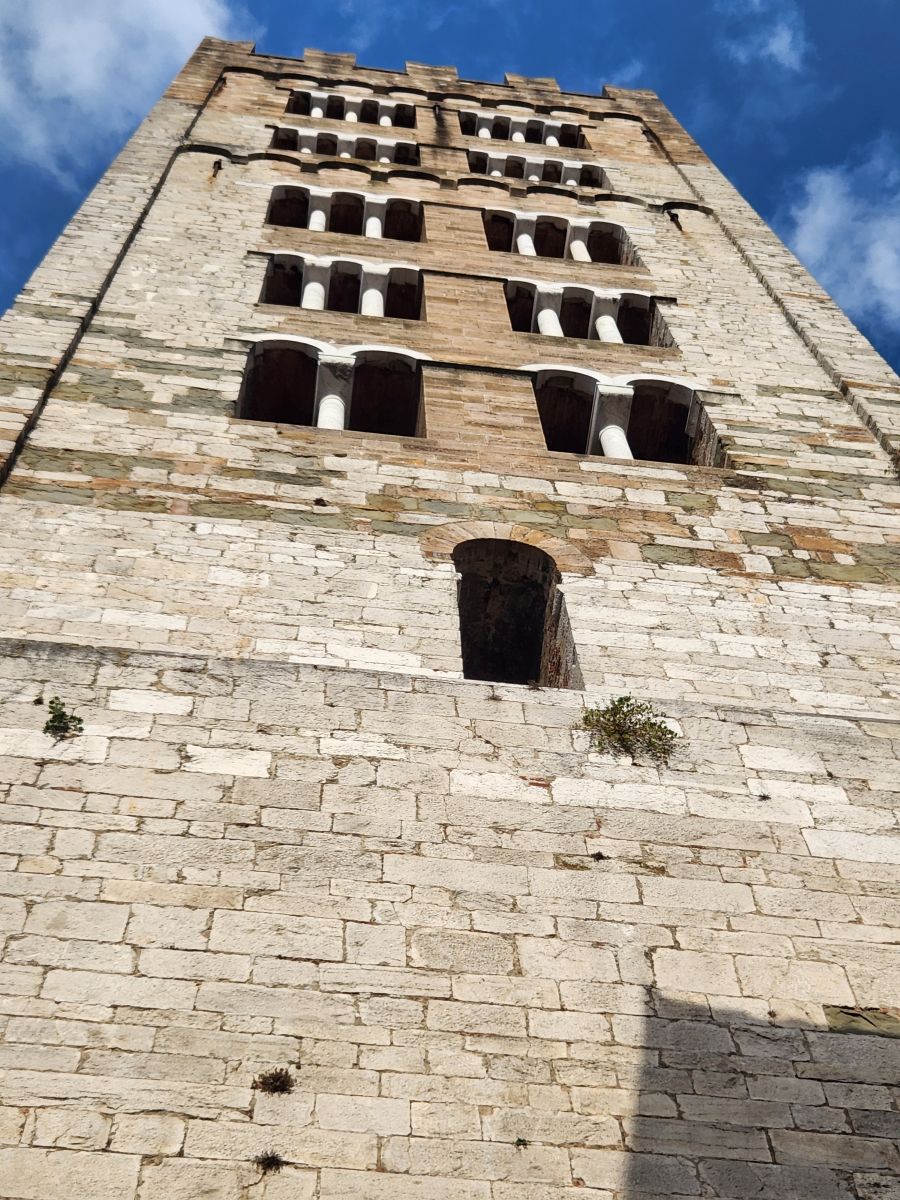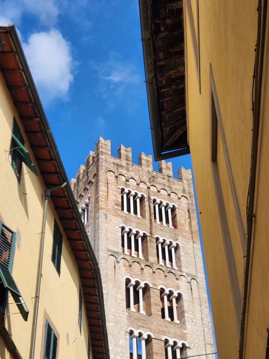Now we are free to wander to our hearts content, and we do, snapping pictures of all the great architecture, the towers, the churches. It is just a lovely old town we have enjoyed for many years now. We are trying to go to the Piazza dell’Anfiteatro, but somehow manage to miss it on our first pass. Making a complete circuit, all the way back to the Chiesa di San Michele, we realize our error and backtrack to the Anfiteatro, which looks like a mini Sienna.
