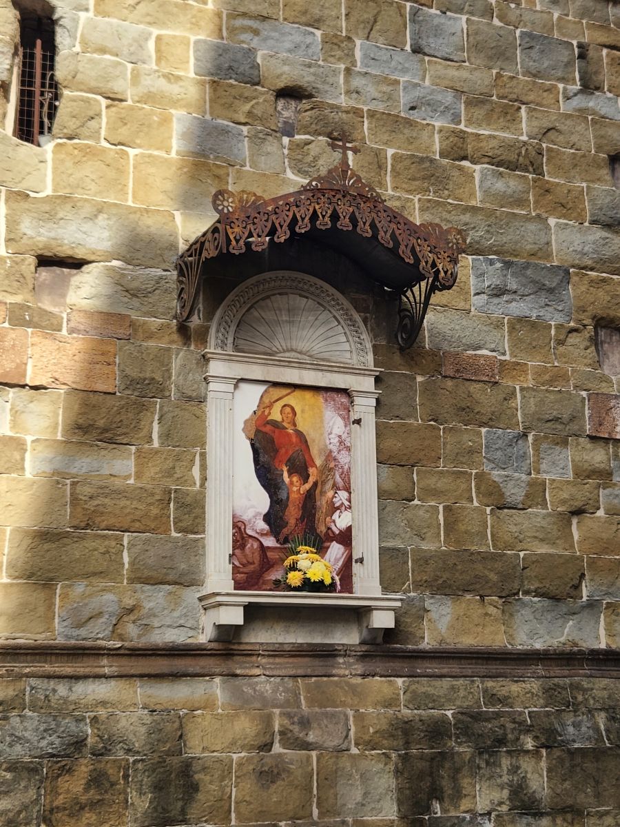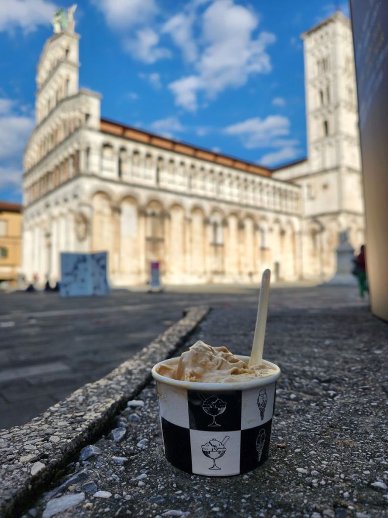 Thinking about having a drink, we decide not to stop here where most every table is filled and retrace our steps toward San Michele, stopping along the way for our first – and only – gelato of the trip. Last day in Italy – it is our way of saying Ciao!