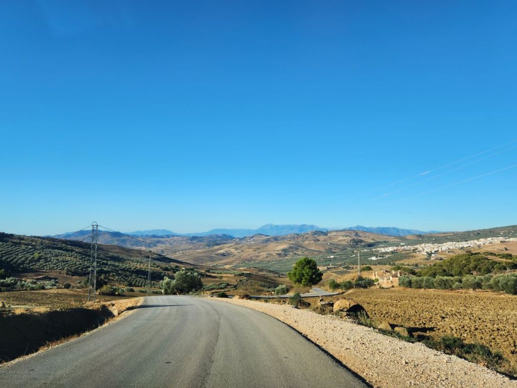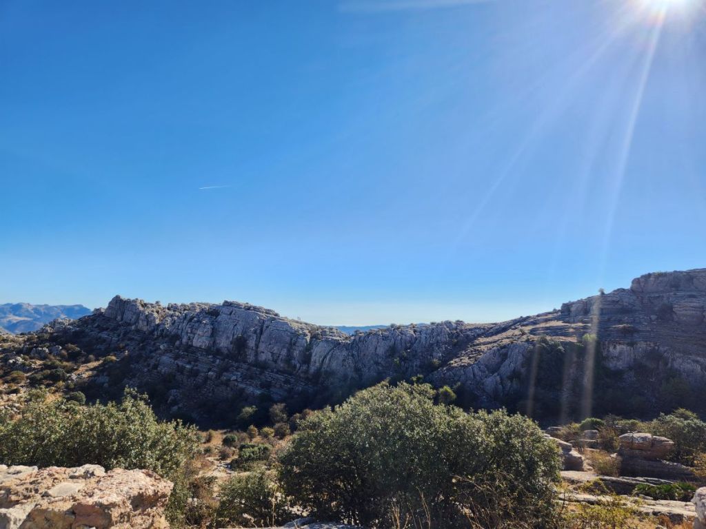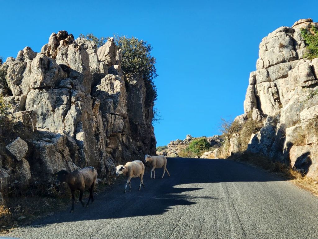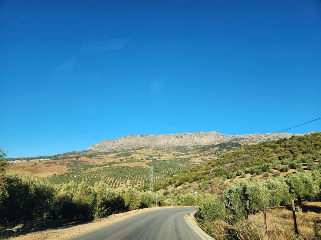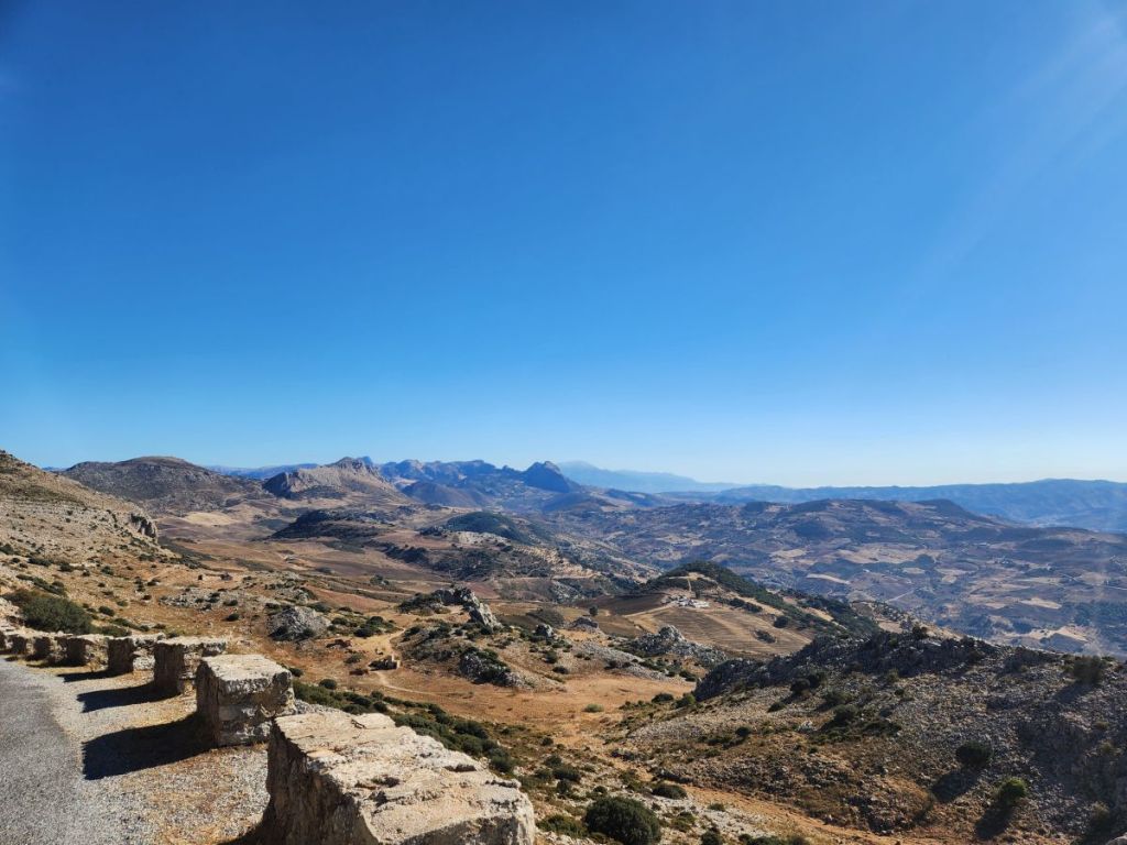 And we are off. Quickly making our way through Malaga’s waterfront and onto some little narrow side streets that eventually lead us to the road that will take us up into Antequera. The roads are good, if not a little narrow as they start their steady climb through farmland and scrub, reaching ever higher until we see the craggy karst range ahead of us. The views are spectacular even here.