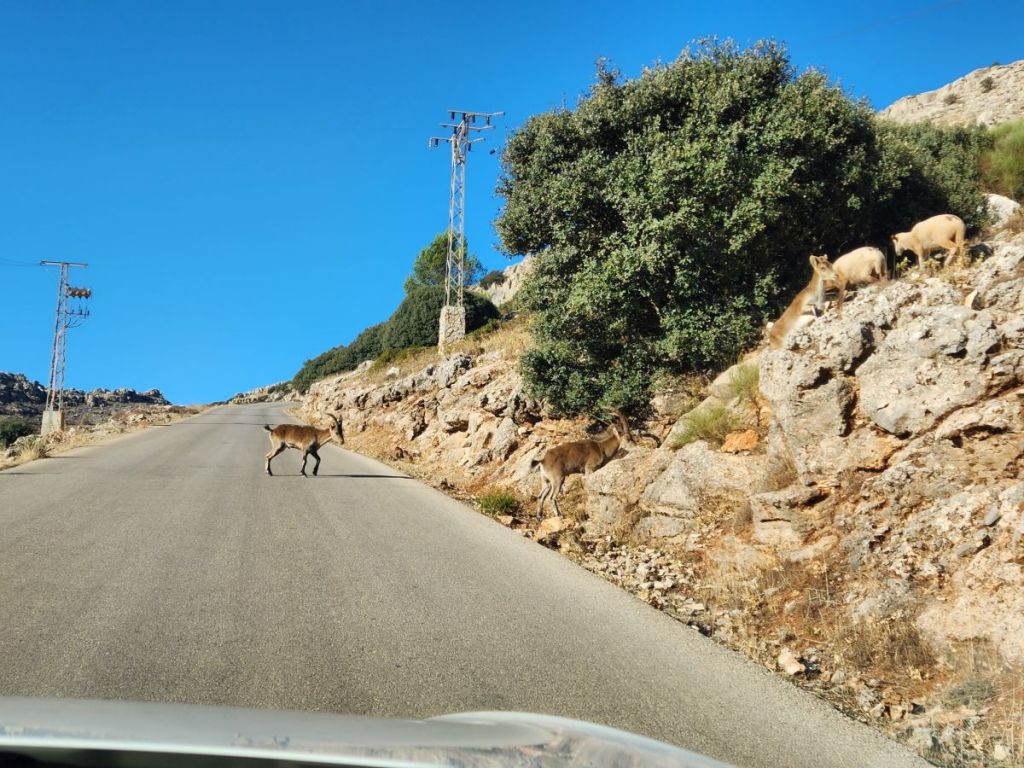 And of course, being us, there are goats. Lots of goats running all over the road and along the craggy landscape next to the road. At least we are in a car this time! Oh and deer, who just stand there and look at us as we stop and take pictures.