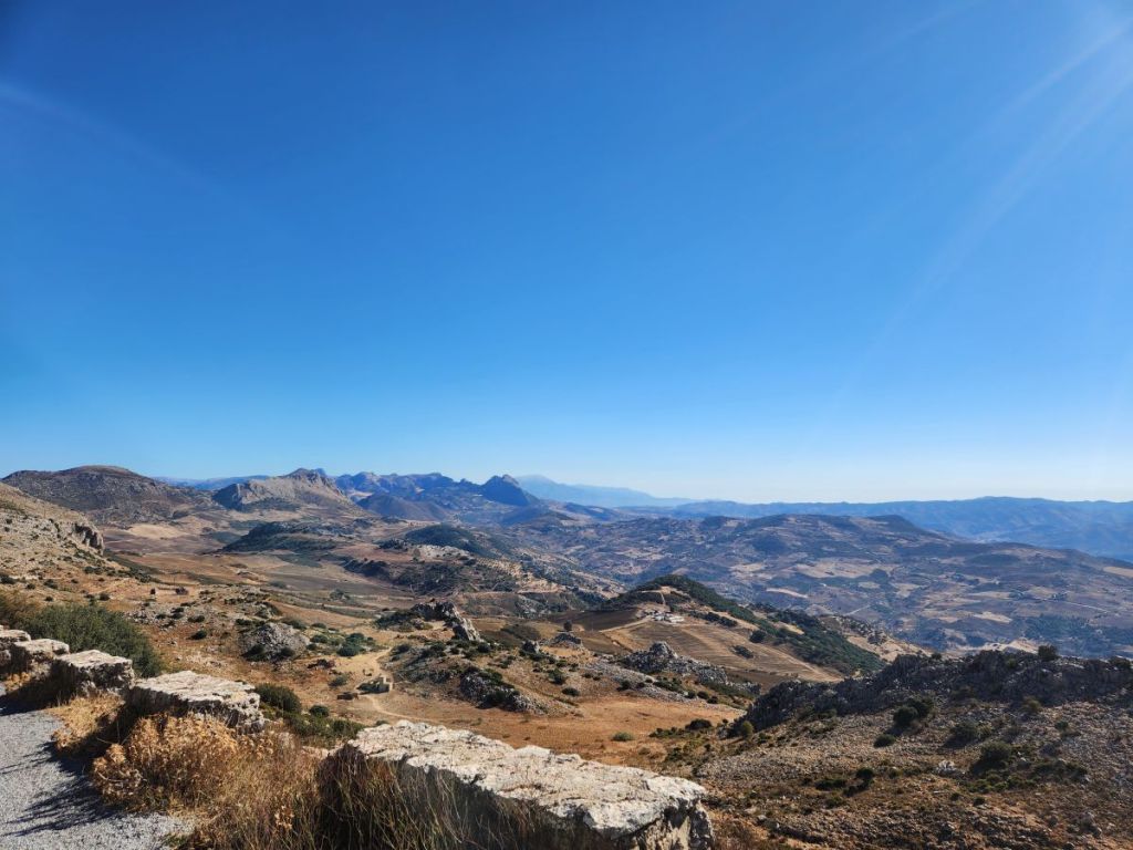 Stopping at the visitor’s center to buy a map, we proceed first to the lookout point with incredible views out over the Andalusian valley.
