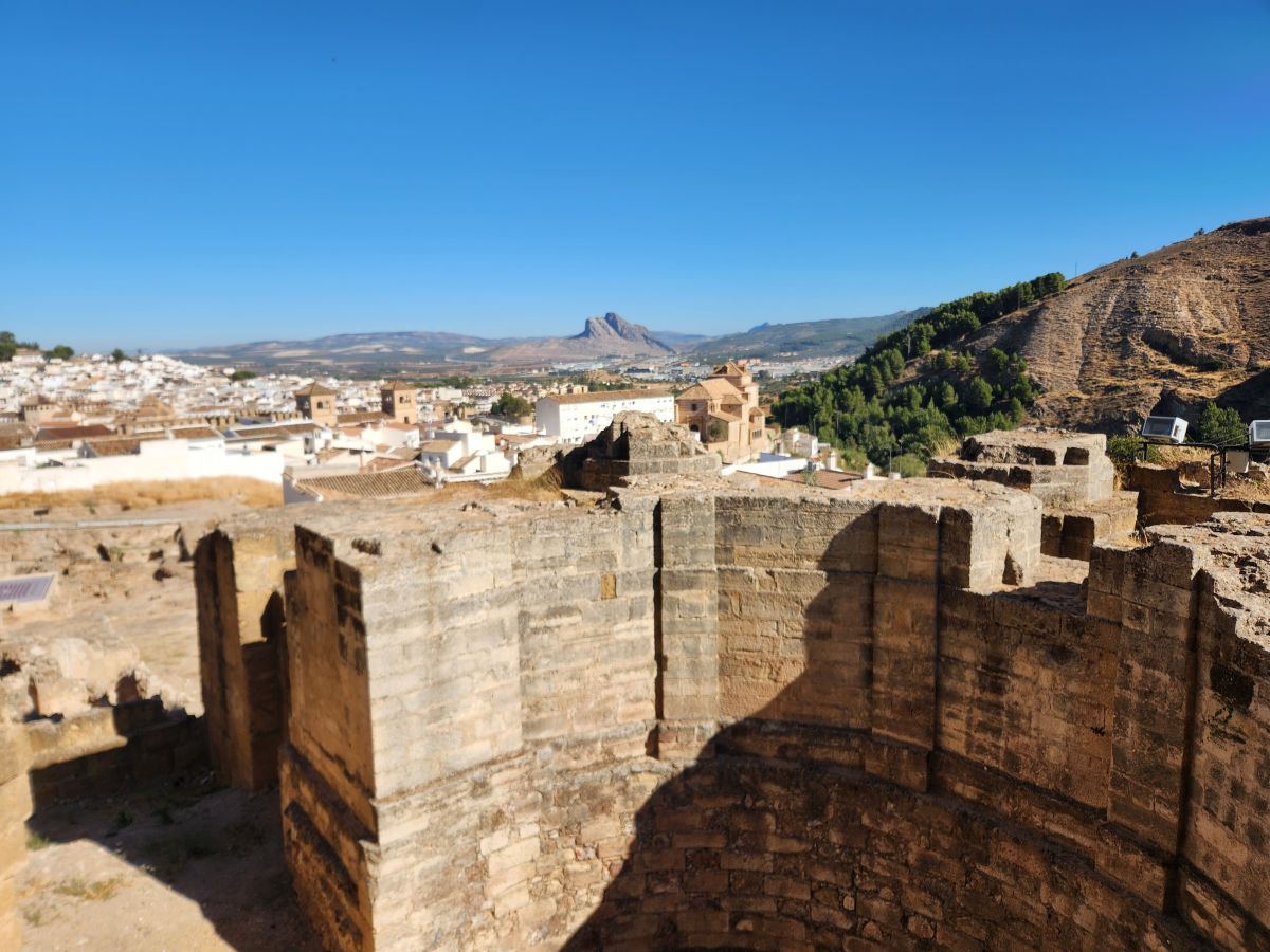 Traversing the mountain range, eventually dropping down out of the highest peaks, then weaving our way up again to the town of Antequera, we sort of miss the parking lot at the bottom of the town (where the guidebooks say to park) and get messed up with the stupid GPS telling us to turn on these little teeny narrow and steep cobblestone lanes (uh, no, see Heraklion for reference!!!). We decide to just park the car on this wide road where there are lots of other cars parallel parked and make our way on foot to the Alcazaba at the top of the town. This actually turns out to be the right move, as we are on the outskirts of the walled city, but essentially right below the Alcazaba and the Real Colegiate de Santa Maria la Mayor church. The walk from here is much quicker and easier than from where the parking lot was located! Bonus.