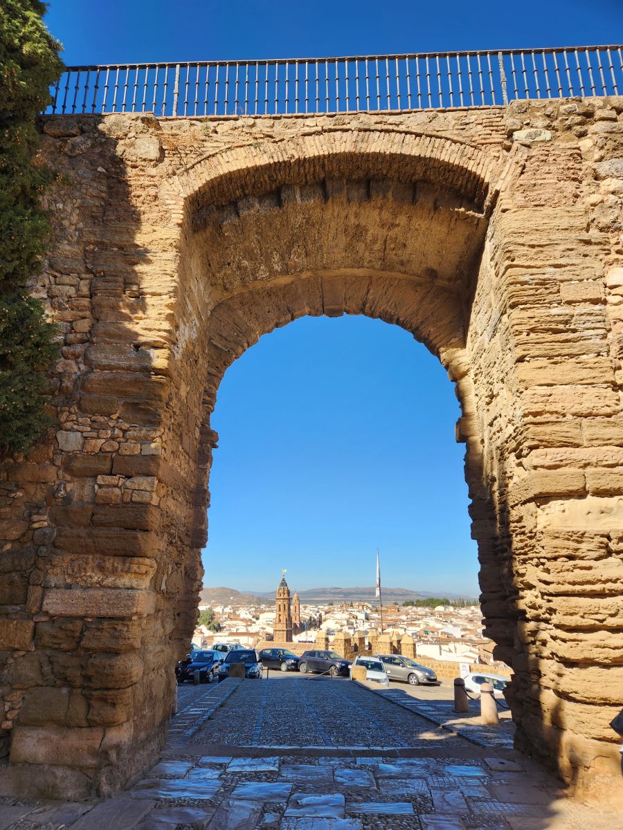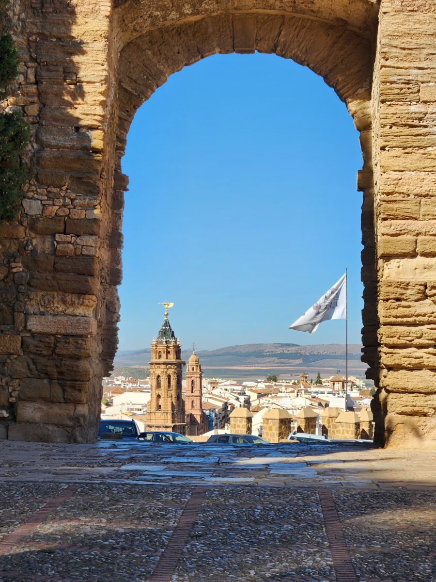 Rounding a corner, we come upon the majestic Santa Maria church, opened in 1550, and the Arco de los Gigantes – the arch of the giants which was the entrance to the ancient Arab medina. Here again there are stunning views out over the city of Antequera stretching out below.