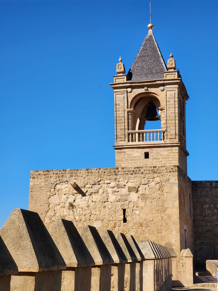 We spend a nice 30 minutes or so wandering around, climbing the different towers and jumping 2 feet in the air when the bell tolls as we are climbing up. The town is huge, as we can see from up high, but so beautiful, the white houses a fabulous contrast to the brown hills in the distance.