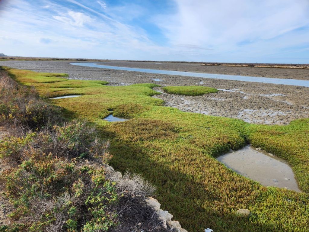 It is a really short and easy 20-minute drive to the entrance of the Sendara Tres Amigos-Rio Arillo walking trail which is a 4.8k circuit through a beautiful estuary and old salt fields ending in an abandoned salt mine near the coastal highway. On the way, the drive reminds us of the Outer Banks and the road to Hatteras along the barrier island. Once at the parking lot, we easily find the entrance to the trail and are off on our hike.