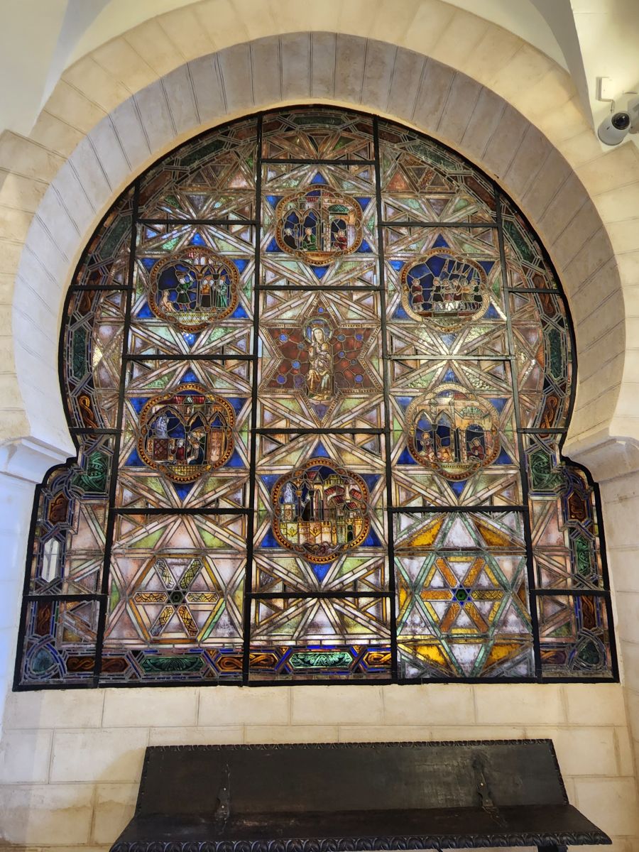Two fantastic stained glass windows at the end of the chapel area depict the King and Virgin Mary surrounded by the 12 miracles that occurred in the regions. Spectacular.