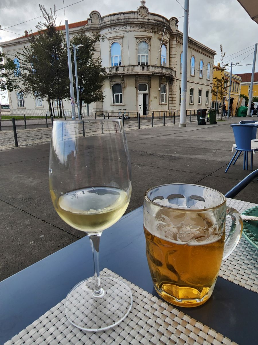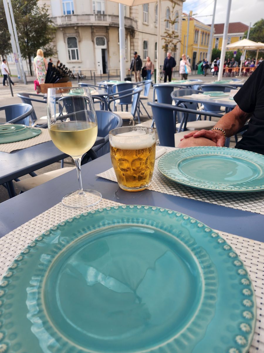 While we have arrived early everywhere, today, yeah, we’re just on time at 10am. The car is booked for 10 – because of course we figured we’d be at the Santa Apolonia pier. When we are finally released, we hurry out onto the pier and wind our way out of the little terminal and then across the swing bridge to get to the mainland in search of someplace to wait for an uber. We end up walking way down the street with another passenger who is going to go hang gliding somewhere. We get into the conversation before realizing we’ve walked way too far down the road, and don’t need to cross over the tracks as she does to catch the tram.