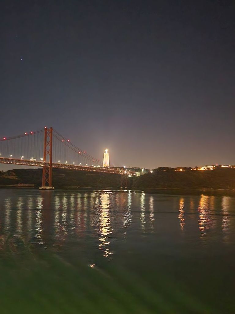 A beautiful evening that ends with a gorgeous sail out under the Ponte 25 de Abril bridge with the Cristo Rei watching over our departure.