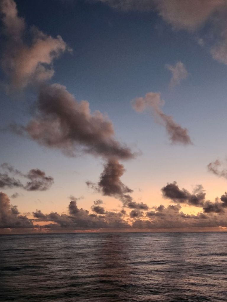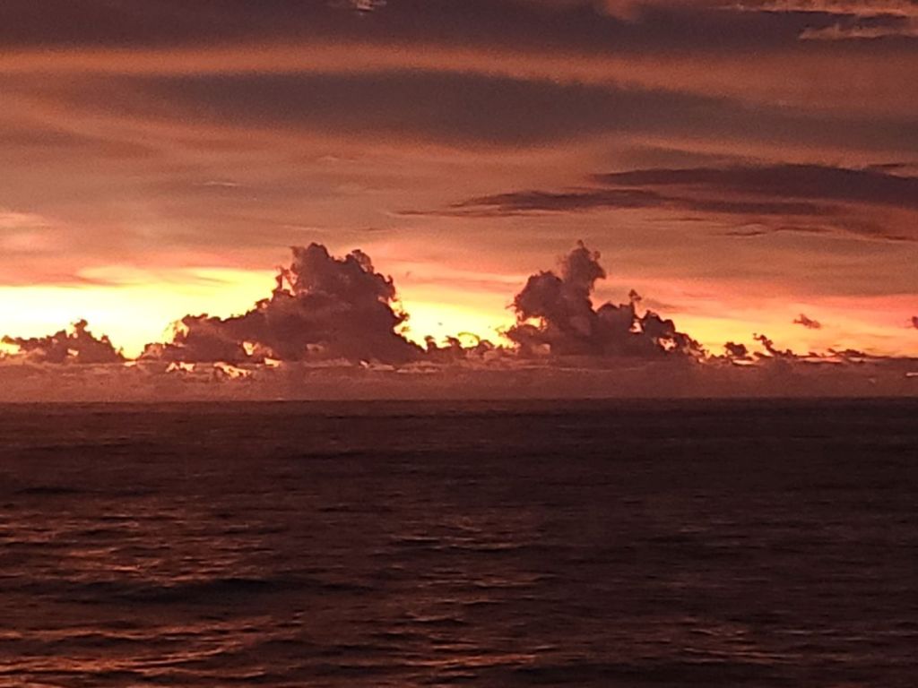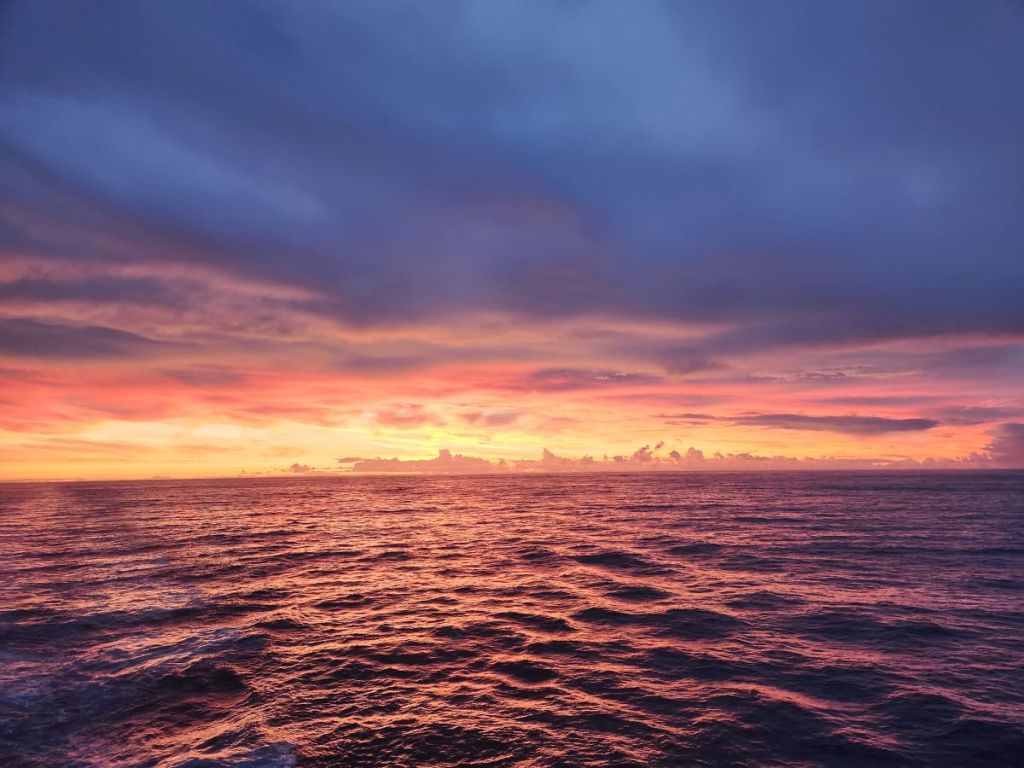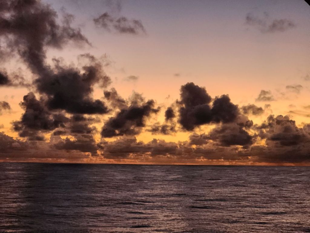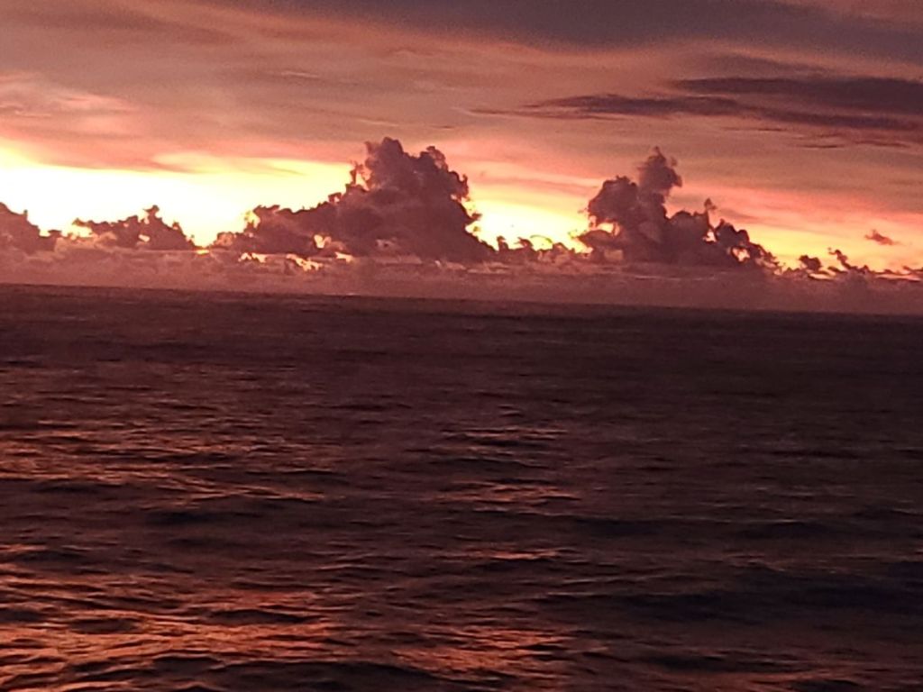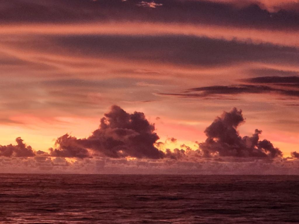 Red Sky in the morning, sailor take warning! And it was a little rocky and bumpy for the first couple days.
