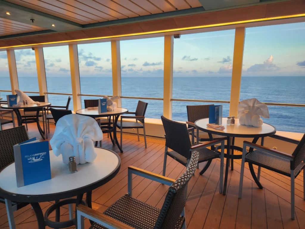 Food: HAL 1, NCL 0.5. Both lines have good food, with some dishes that qualify as excellent. But from an overall comparison, I think HAL has better quality and choices. Ed doesn’t necessarily agree, so I’m taking this one on me. I just like the preparation and menu choices better on HAL. Now, it isn’t truly a fair comparison because we rarely if ever ate in the dining room because it was a nightmare of crowded craziness. But we did eat in the specialty restaurants which were quite good (except for one special) and the buffet was fabulous. Even if it did get annoying that you couldn’t serve yourself and had to wait for really indecisive people to figure out what they wanted on their salad.