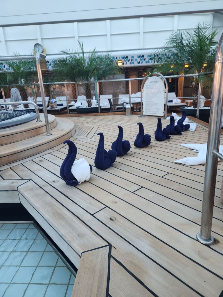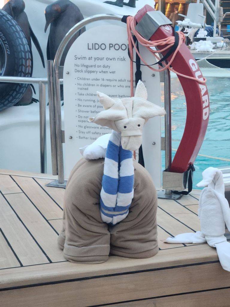I will not bore you with our normal routines, because, well, it’s the same every day and do you really care anyway? No, you do not. There are lectures, there is trivia (no, we are not partaking in that), there are cooking shows and an absolutely hysterical competition between the Captain and Hotel Director, there are shows, comedians, etc. There. Daily activities.
