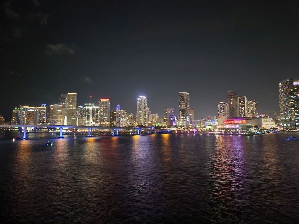 And finally, we docked in Miami, with good tidings and wishes to the ill passenger. It was a beautiful evening and we hope all turned out well for them.