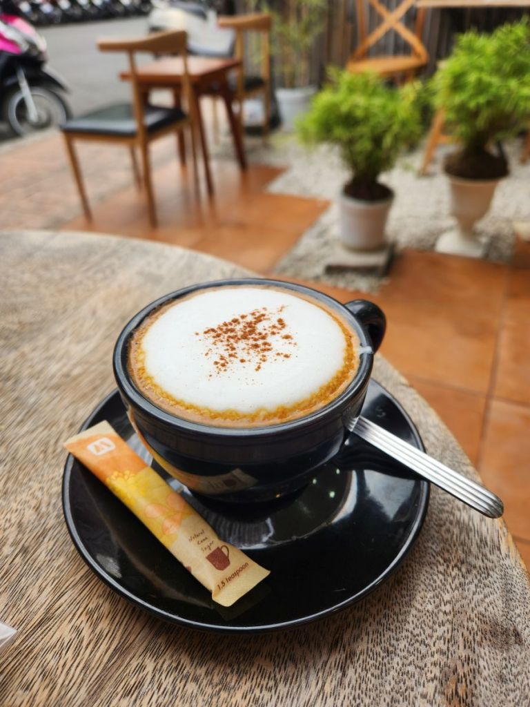 We had a very good night’s sleep and now we are ready to hit the ground running. Or at least walking, as the case may be. After waking up with coffee on the balcony, we decide we need more, so we head to the closest cafe, Wako Bake, a mere 3 minute walk away, for cappuccino. Can’t break with a traveling tradition! There is a cute little courtyard out front complete with rocks and a fountain where we wake up even more with a lovely hot drink.