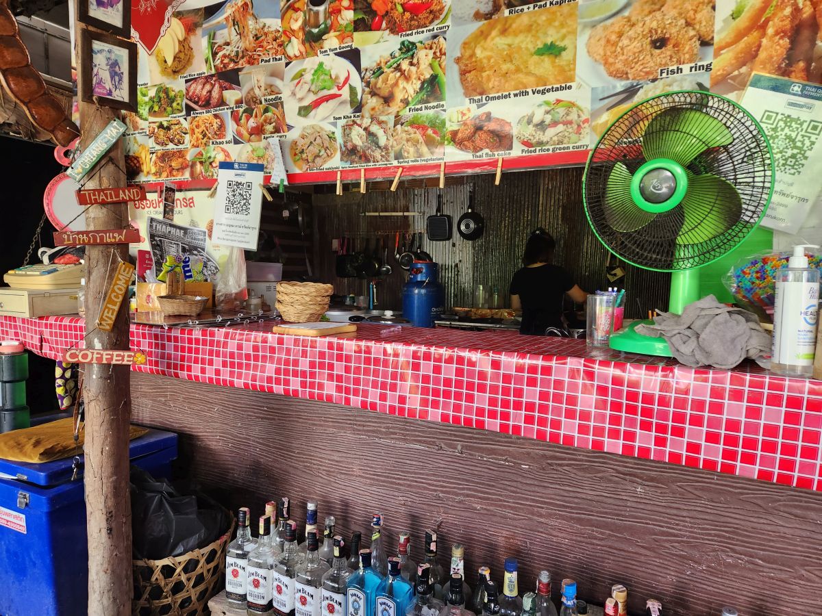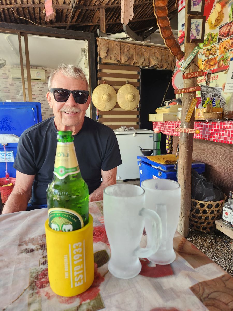Stashing our groceries, we head back out for lunch at a cute little place we looked at yesterday called Always Thai. Ramshackle, open air, totally atmospheric, cute as hell; small kitchen – no wine pooh – but excellent Pad Thai and Fried Mama Noodles. We had the place to ourselves, enjoying good music on the speakers and an excellent meal all around – no wine notwithstanding, I shared the beer!
