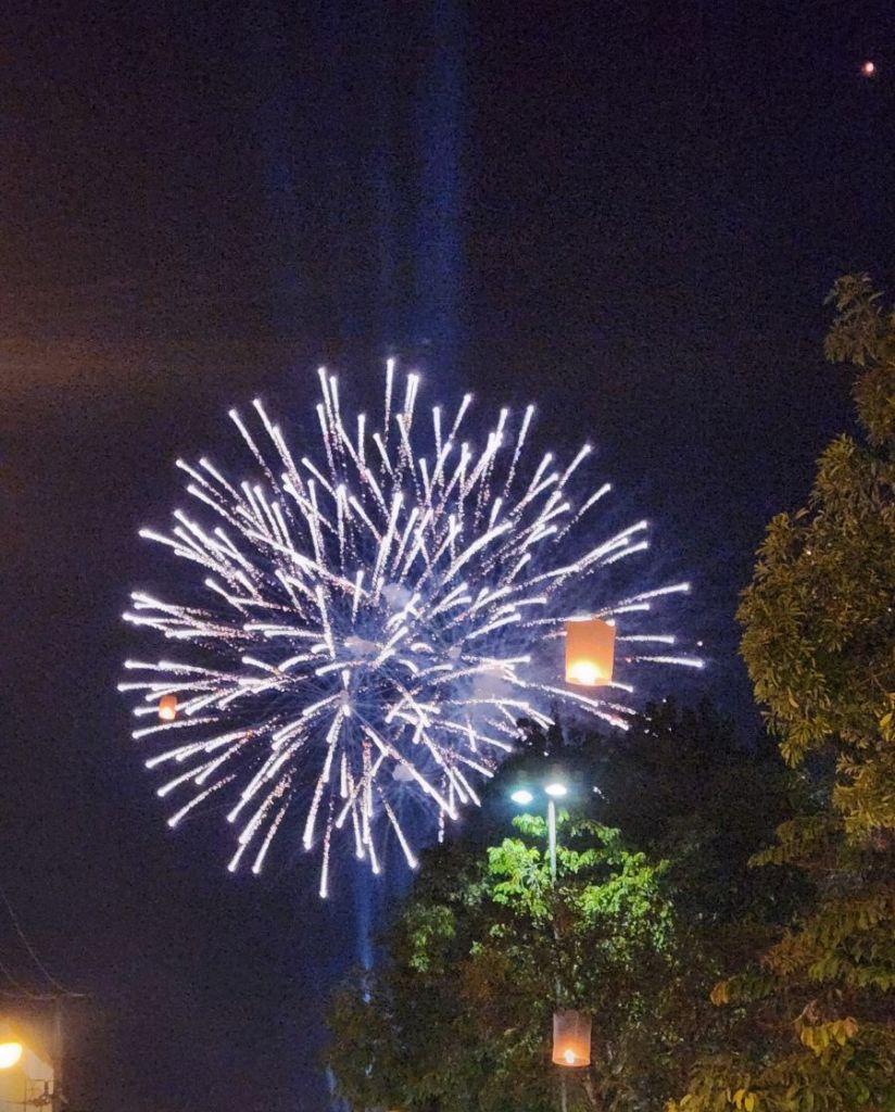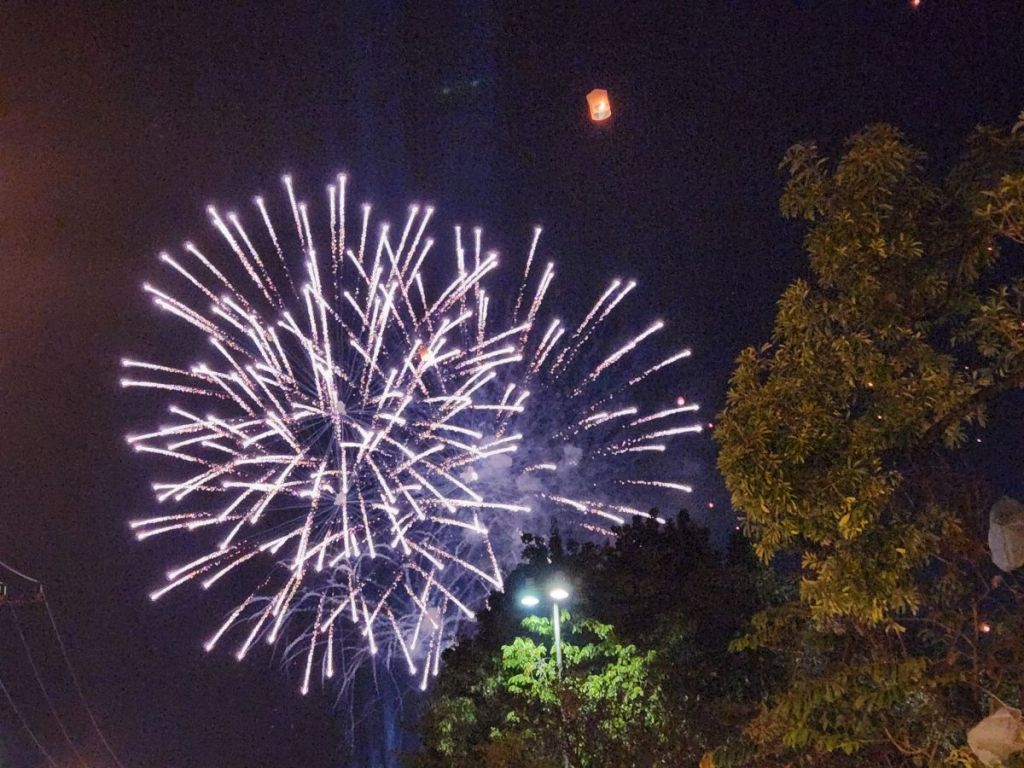Finally the countdown begins! (As an aside, I had already counted down because somehow the clock in my phone is 1 minute fast. Now can someone out there tell me how on earth that can happen?) And we all join in cheering in the New Year, watching more lanterns (yes, they are never ending) and enjoying the fireworks from all around the city. There had to be at least 6 separate locations blowing off big, professional fireworks. Crazy! And oh so fun!