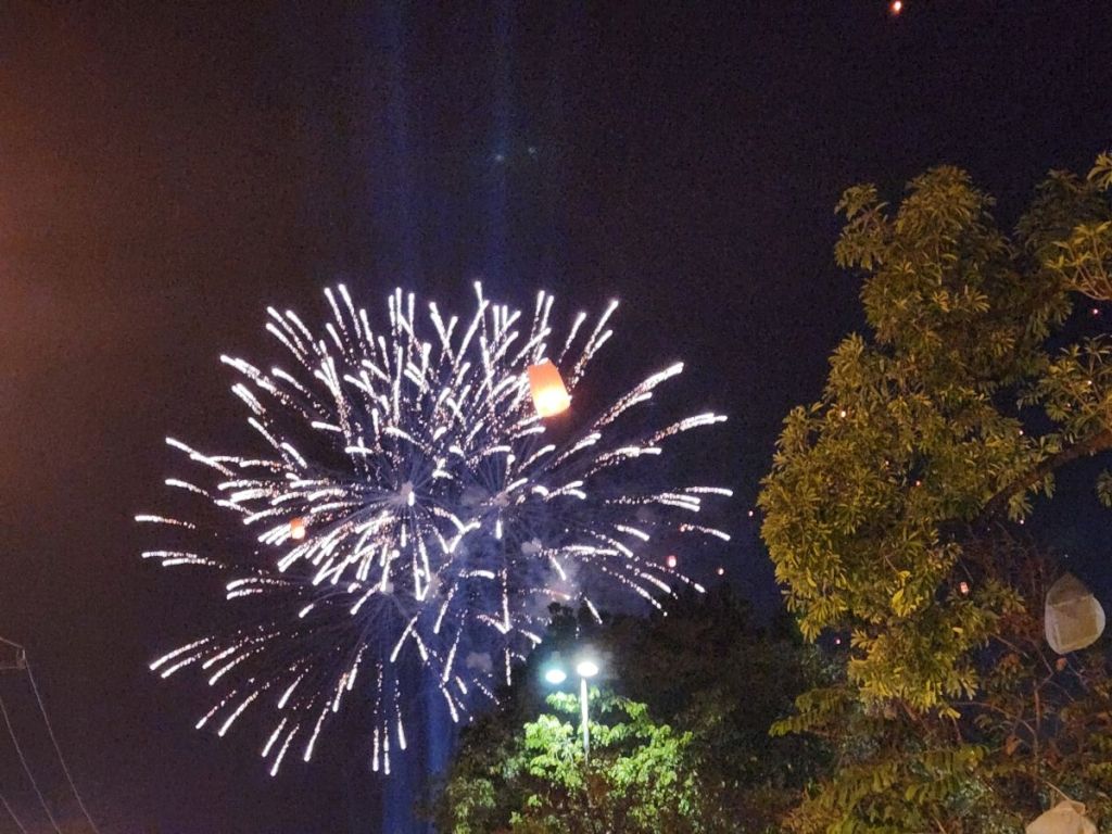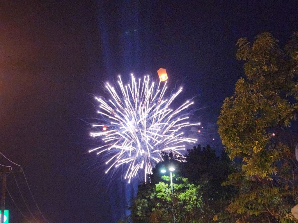 Back at home on our 2nd floor balcony, we decompress a bit from our exciting evening and watch the last (at least we hope it is the last) of the lanterns floating out over the moat in the distance. Most fun New Year’s Eve in a long, long time!