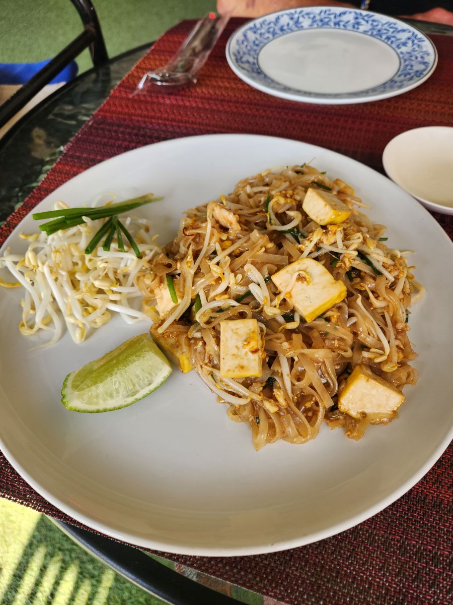 While a tad pricey compared to the standard, the food is excellent and traditional – Pad Thai for me, pork stew for Ed – and of course adult beverages. It goes to a good cause – and we need to burn time!
