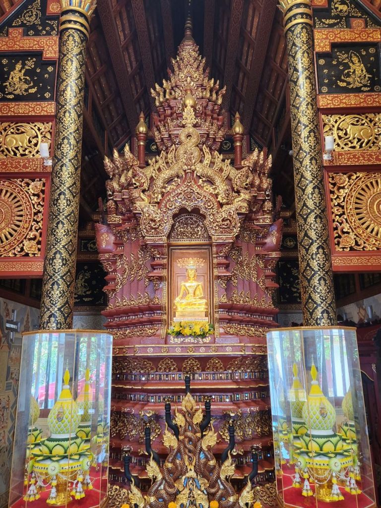 The Wat is ornate with red walls, gold inlays and a stunning bronze Buddha. Also in the complex is an excellent museum that contains lots of artifacts and objects that typify the Northern Thai culture.