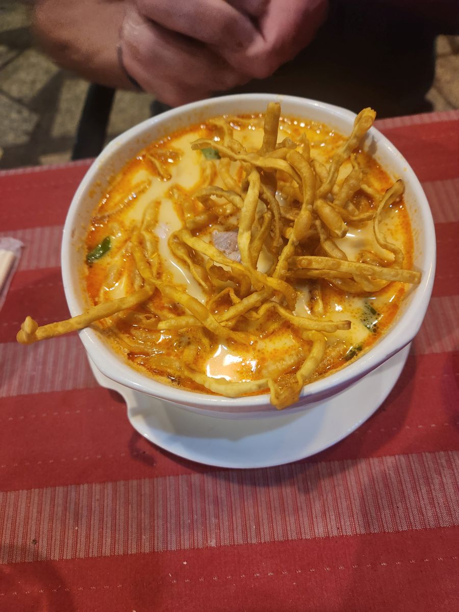 As usual the owner greets us like family, brings us our drinks without asking and his wife even says hello from the kitchen. Feel like belong here! Dinner starts off with Chicken Satay, then of course Papaya pad thai and Khao Soi – there was no way I was leaving this city without one last Papaya pad thai and Ed has deemed Baan Na Na Khao Soi as the best he’s had.