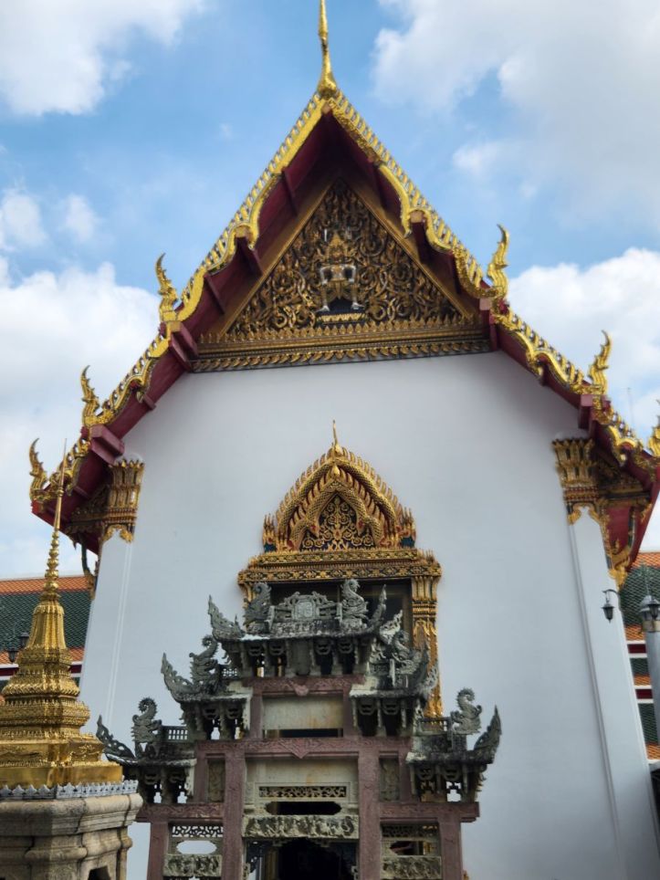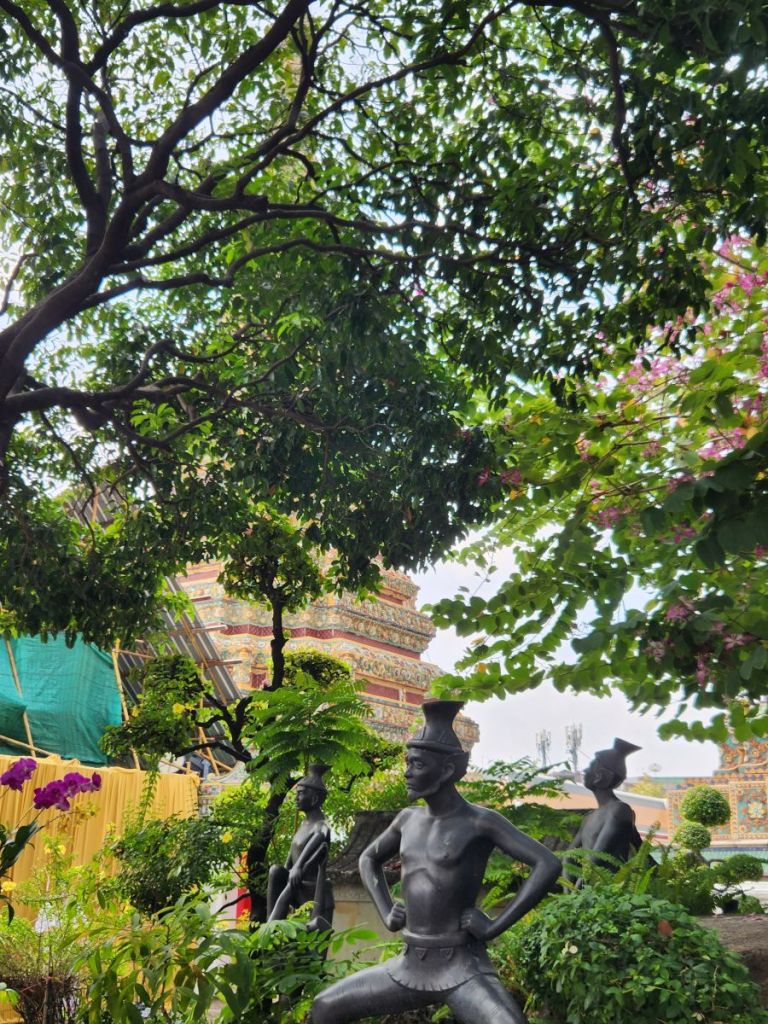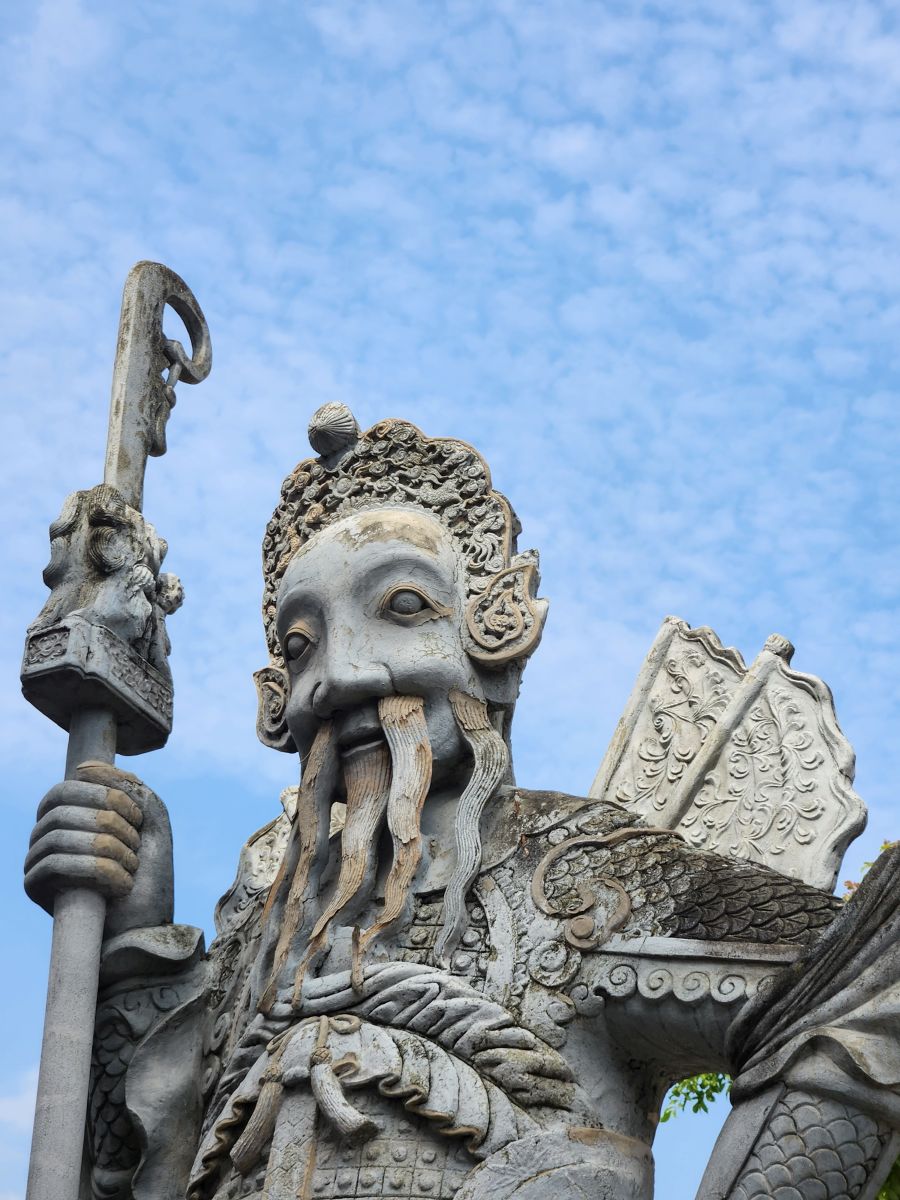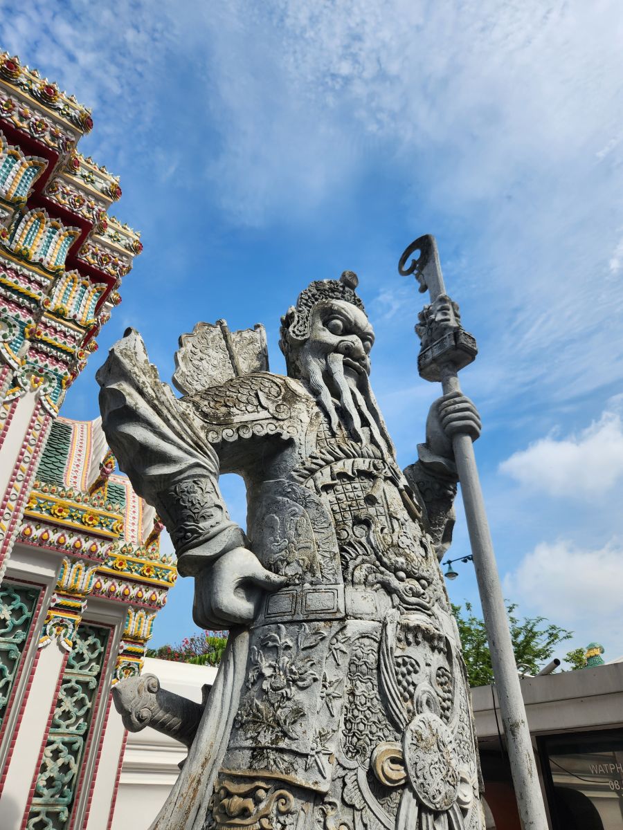 Udom takes us around the exterior courtyard, explaining the different warrior statues and meanings of the flowers and different offerings. We finally now understand the incense that worshippers use at temples: 3 different incense sticks; one for what you want to do in life, the second for you to actually do that in life and the third for you to continue to do it. Aha!