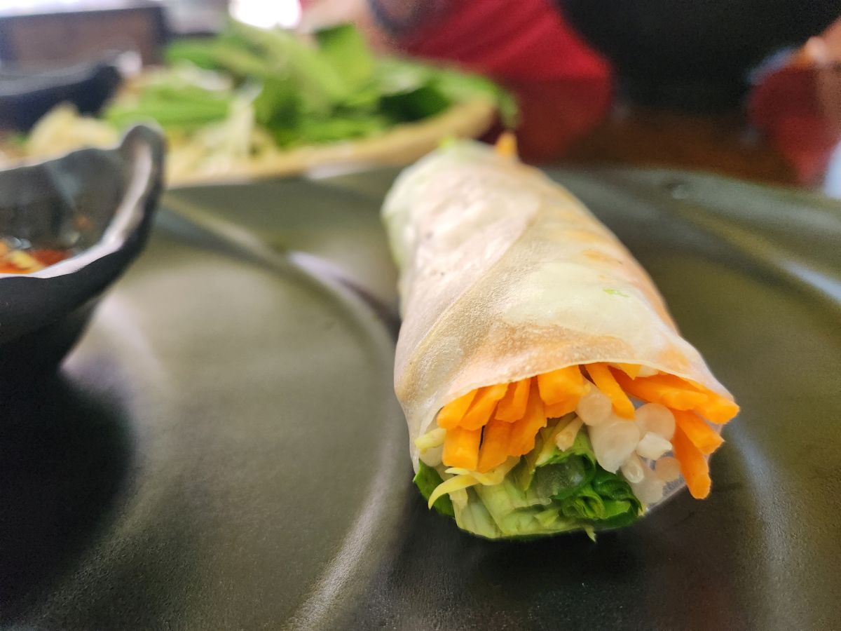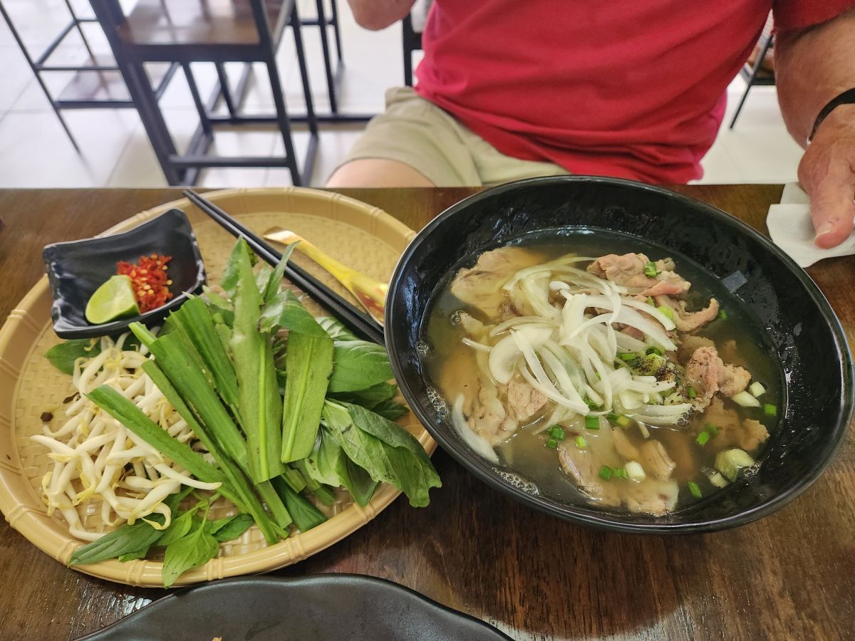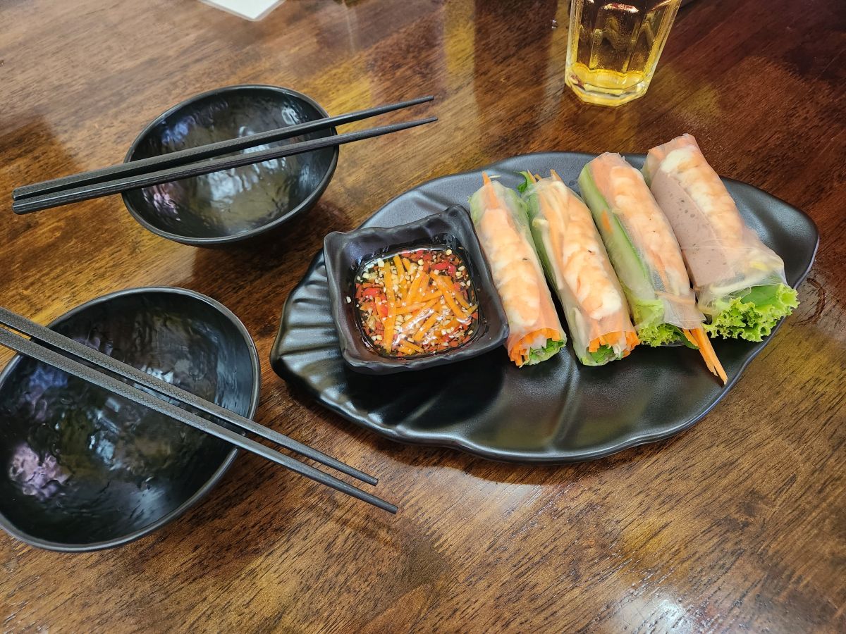 At the hotel, we dump our bags, get freshened up, then head out to a Vietnamese restaurant we had scoped out earlier. We are the only ones there – even though it is almost 1pm – and we have to ask if they are open, which they are. Excellent! Ed has been looking forward to Pho forever and now is his chance to have some! I on the other hand am very happy with fresh summer rolls – can you see the gigantic shrimp inside them? – and we tuck into an excellent late lunch meal (something we’ve come to expect on Gate 1 tours!).