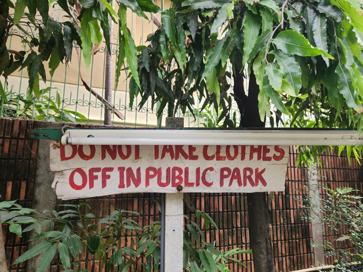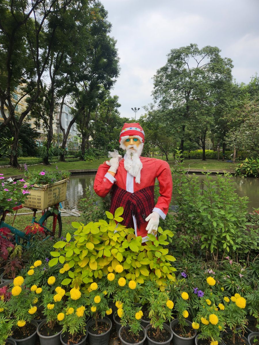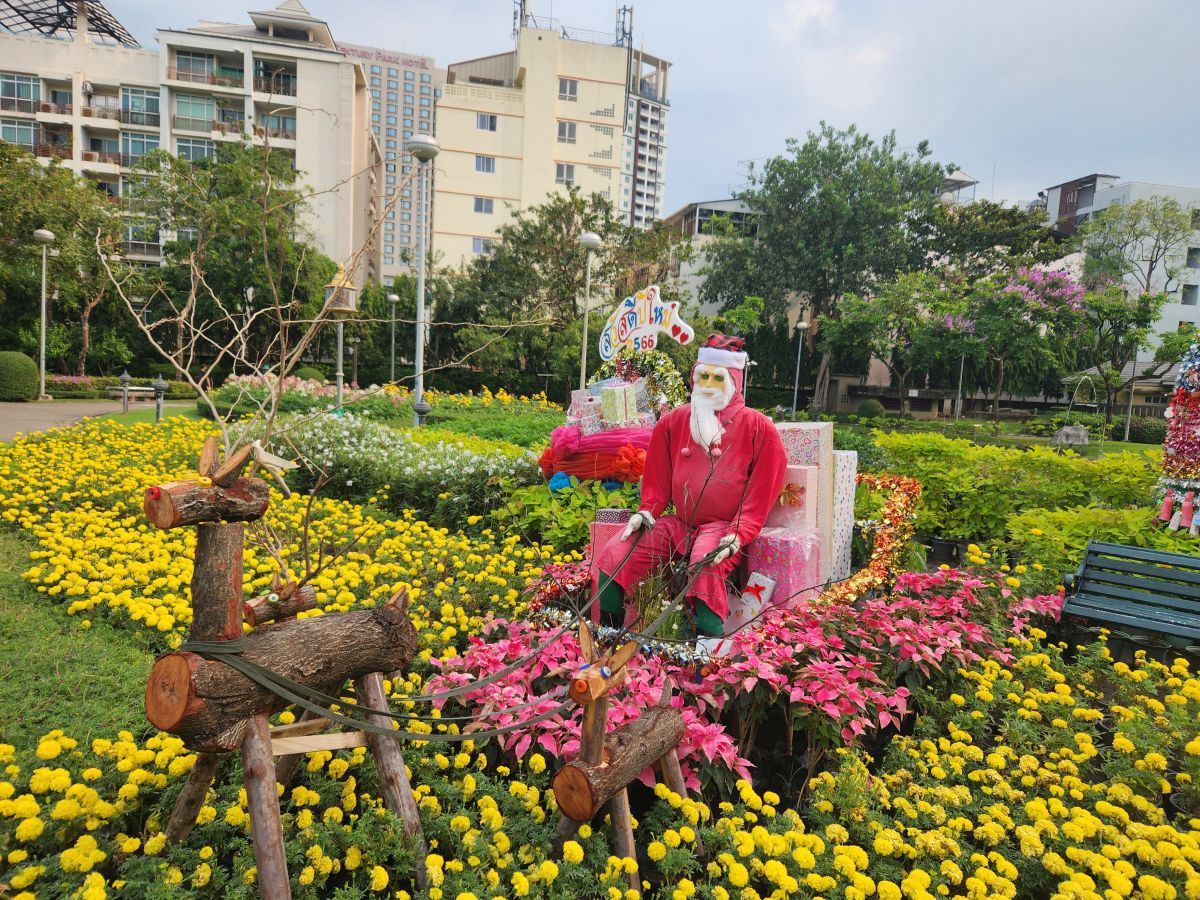 After lunch we head for a stroll through Santiphap park, enjoying the relative quiet and coolness of the green spaces, the beautiful orchids and laughing at the signage placed around the park. Oh, and don’t forget the weirdly depicted – almost scary – Santas still on display!