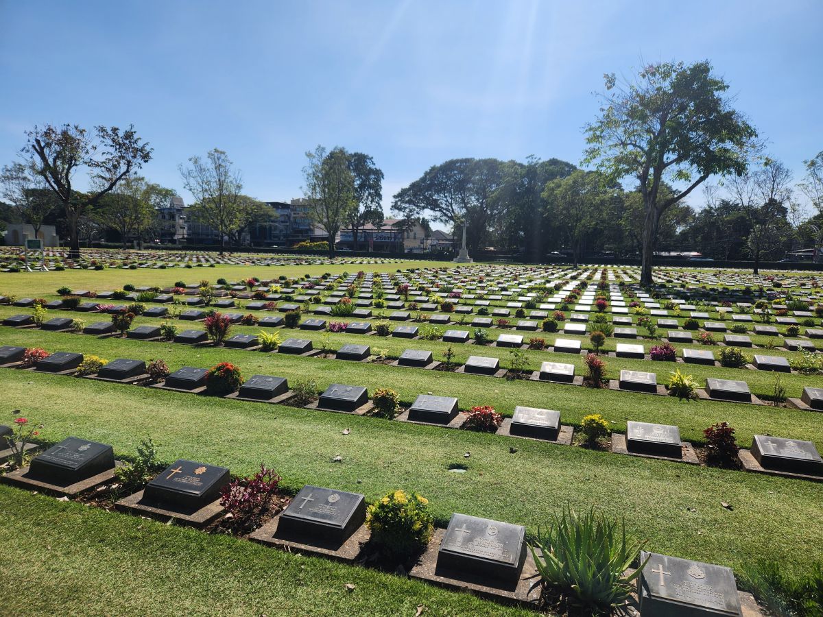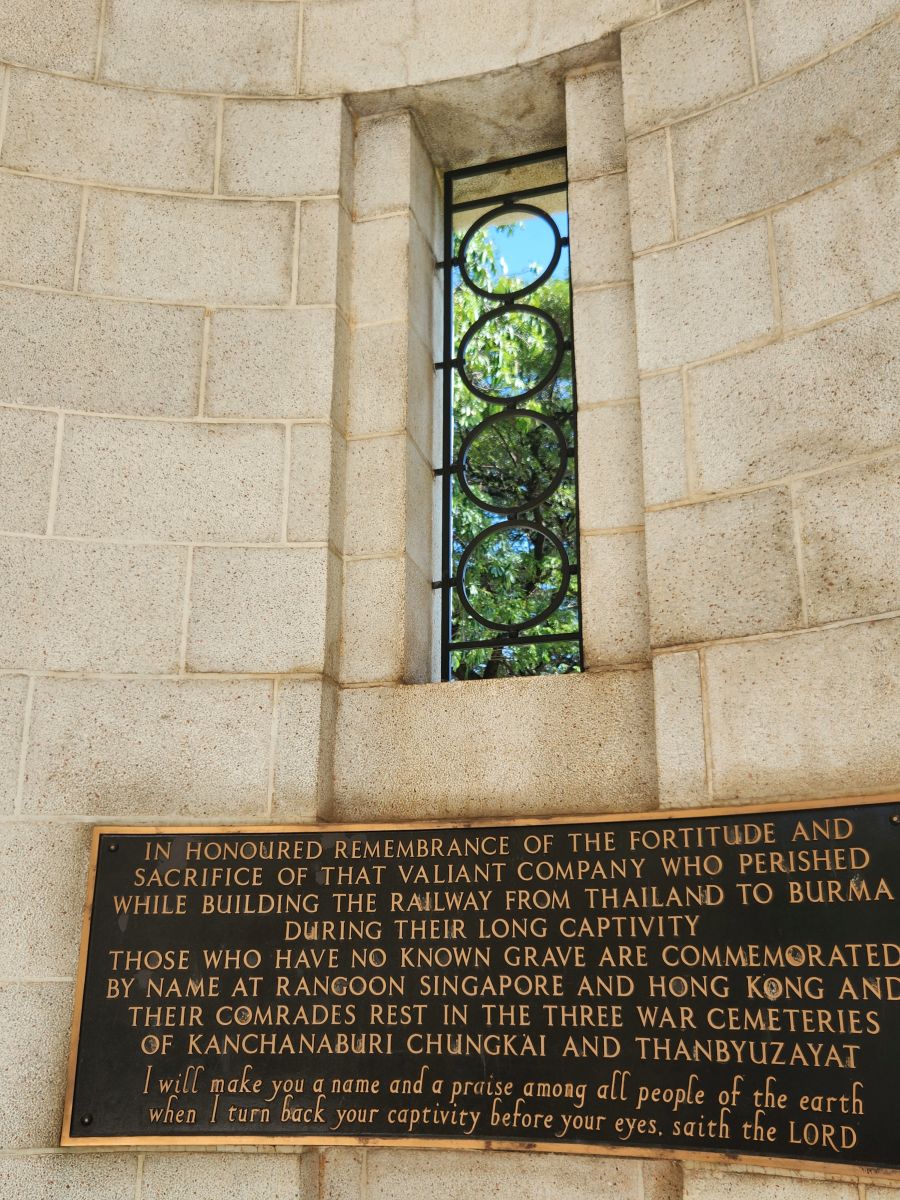 Across the street from the museum is the Kanchanaburi War Cemetery where 5,000 Commonwealth and 1,800 Dutch casualties are buried. It is the largest of three cemeteries on the Burma-Siam Railway, and is located near the site of the former “Kanburi” Prisoner of War base camp, where all prisoners passed before journeying on to their final camp or workcamp destination. It is a very somber reminder of the perils of war, and while we’d love to explore here more, it is hot. Really hot. So hot in fact we go back to the bus early to get into some cooler temperature air!