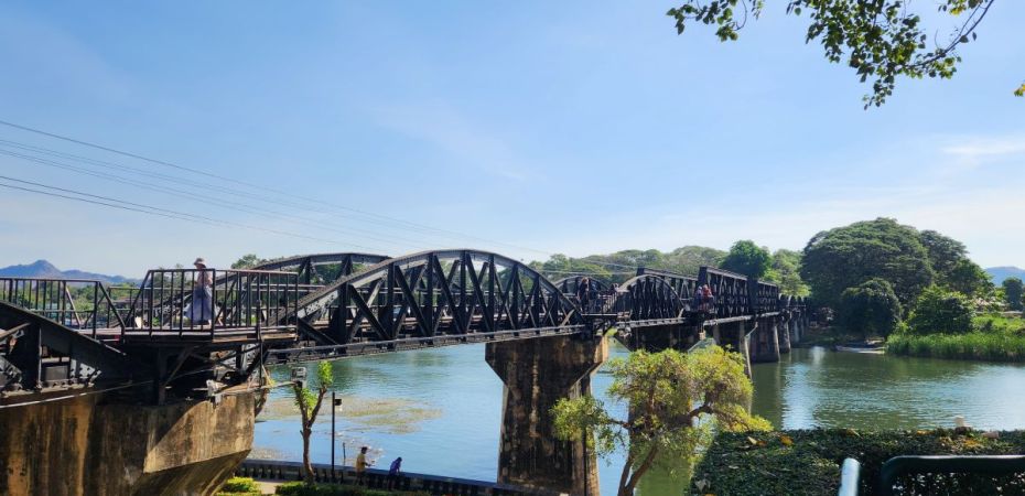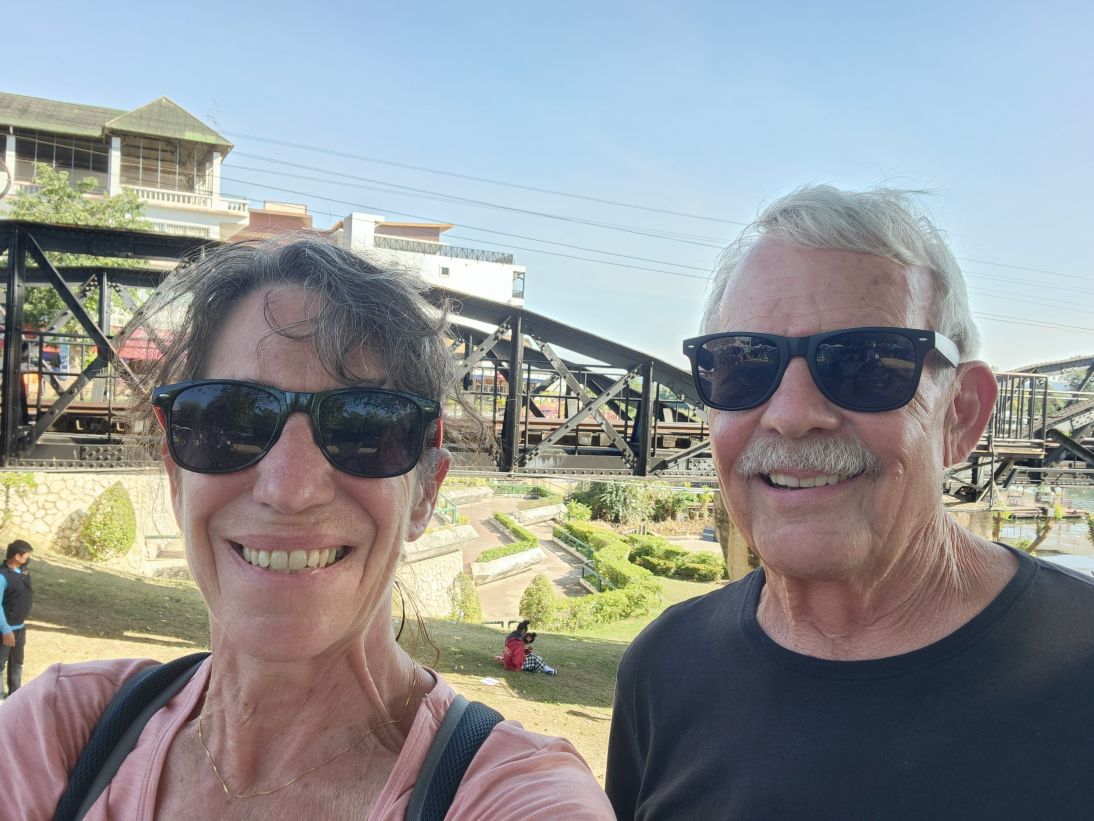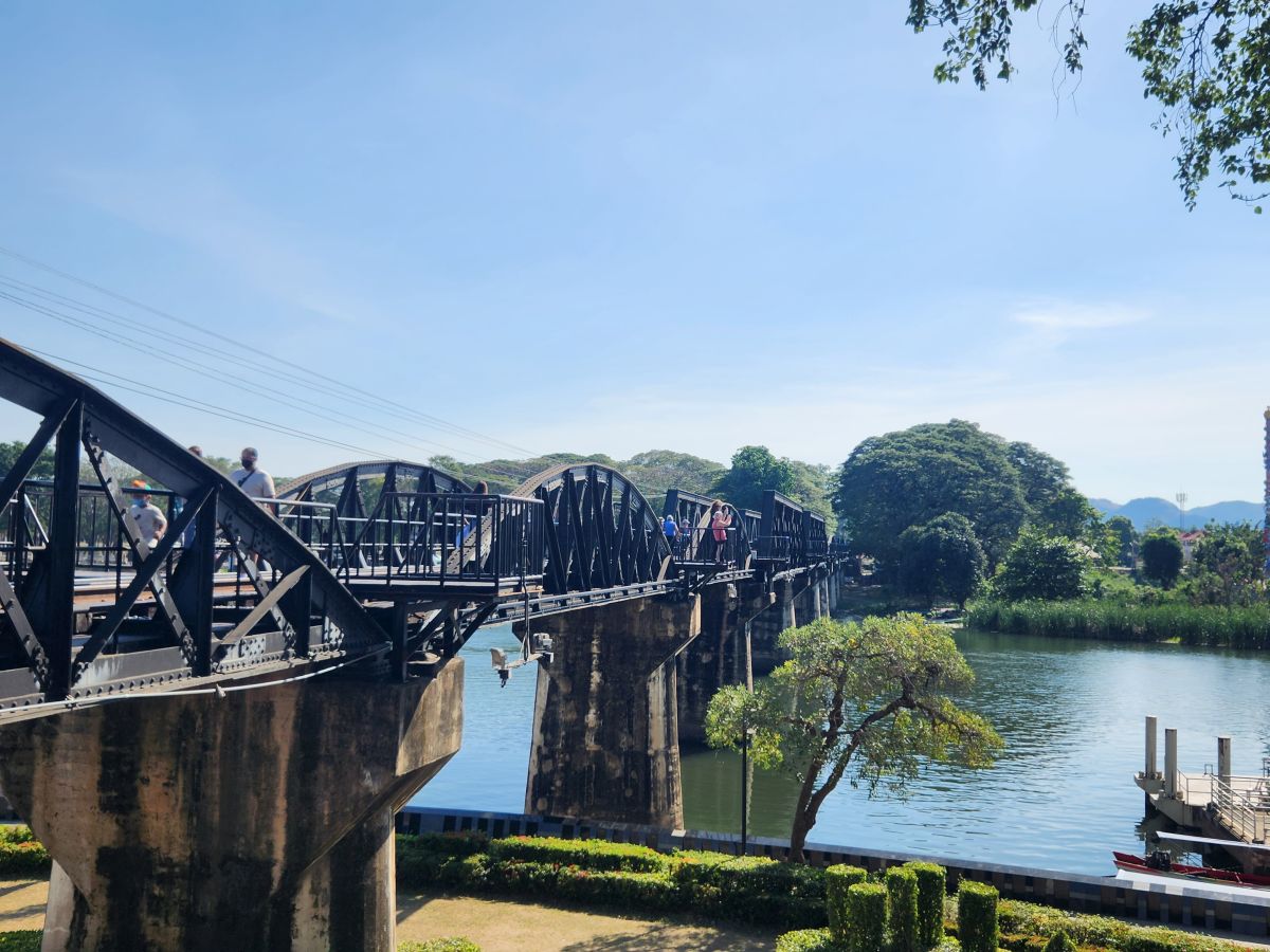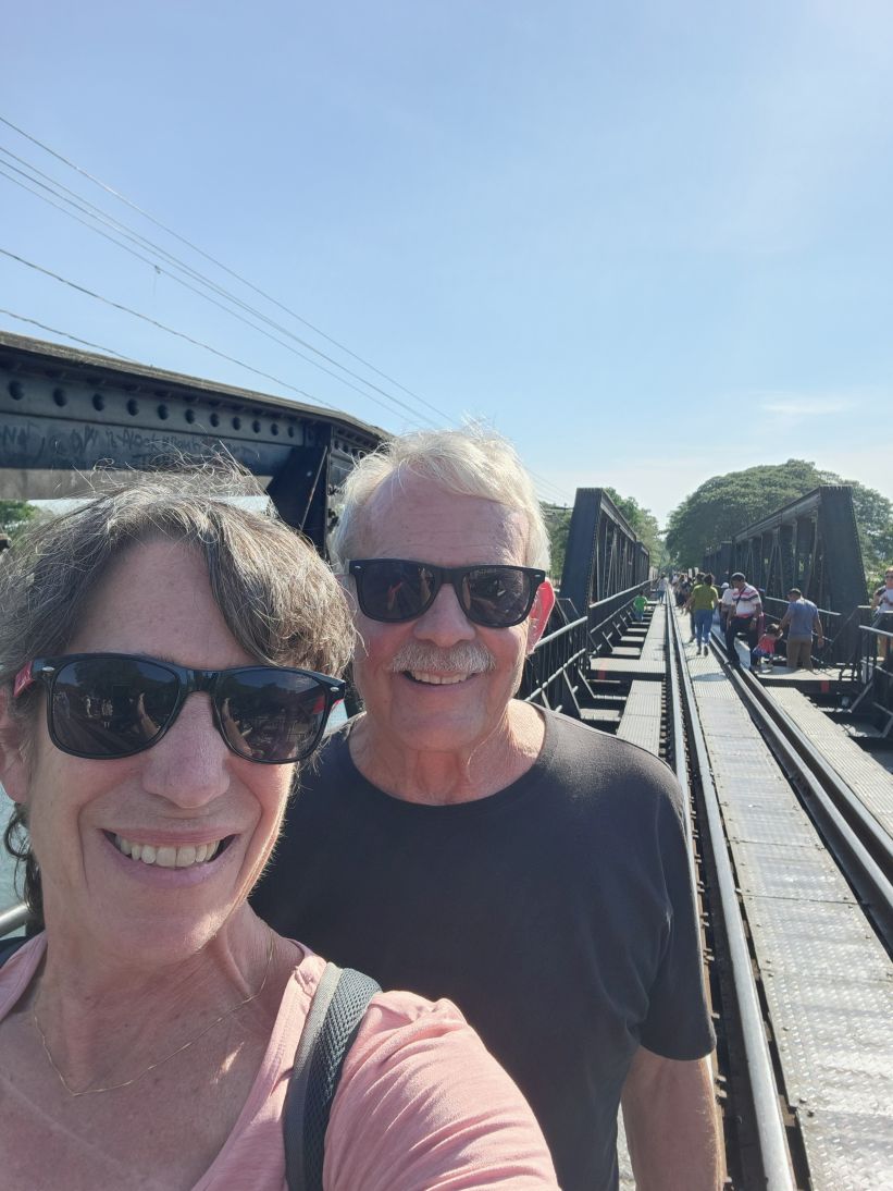 Finally we are off to the Bridge! As always, there are market stalls complexes all around the place, but once out to the river, it is just the bridge, where you can walk out onto the middle and actually stand there when a train comes by. We aren’t lucky enough to do that, but we can walk down the rails to the middle of the bridge for gorgeous views over the river, then off to the viewing point to see the bridge in its entirety. Odum has told us that the trestles that are rounded in shape are original and the squared, rectangular ones repaired.