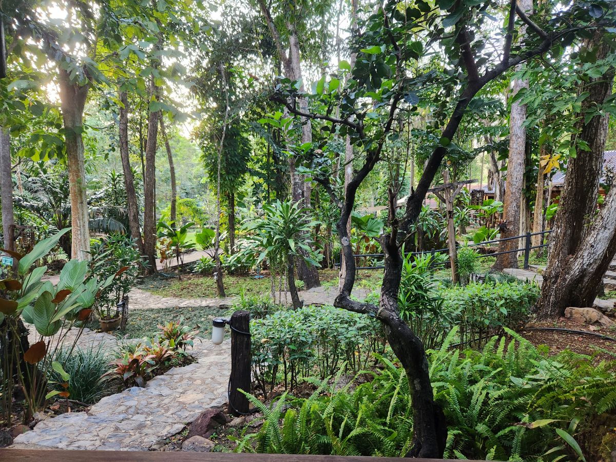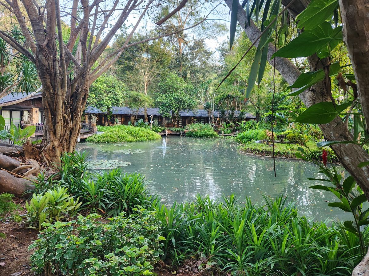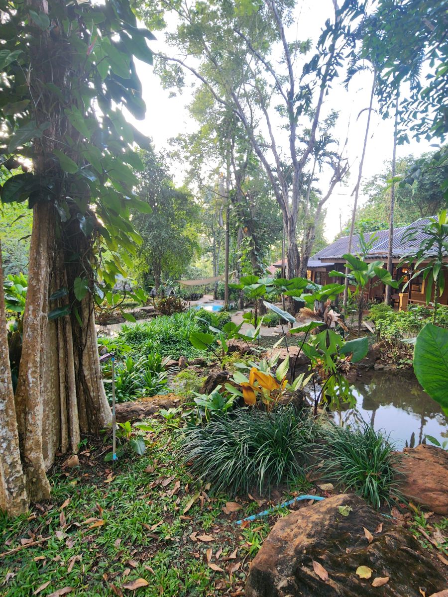 The resort, which btw, Odum had driven out to last week (over 3 hours each way from Bangkok) to check it out when he knew we were staying here) was beautiful. First of all, we had to leave the bus at the top of the entrance drive and take Songthaews down to the resort, because the road is a mile long, all down hill and dirt. No way the bus could make it! The lobby is all open air, and after we are assigned our rooms and get our keys we go out to search for our rooms. All the rooms are in little adjoined cabins were situated around heavily planted gardens and lotus ponds, with little bridges crossing the water and flagstone paths. And huge covered porches. So great. And the rooms were huge and really well equipped. This will be a wonderful 2 days here.