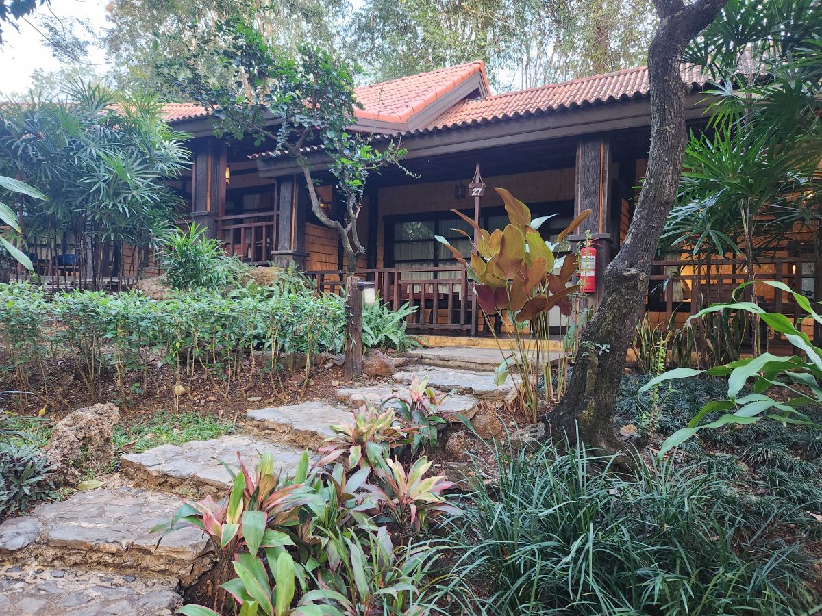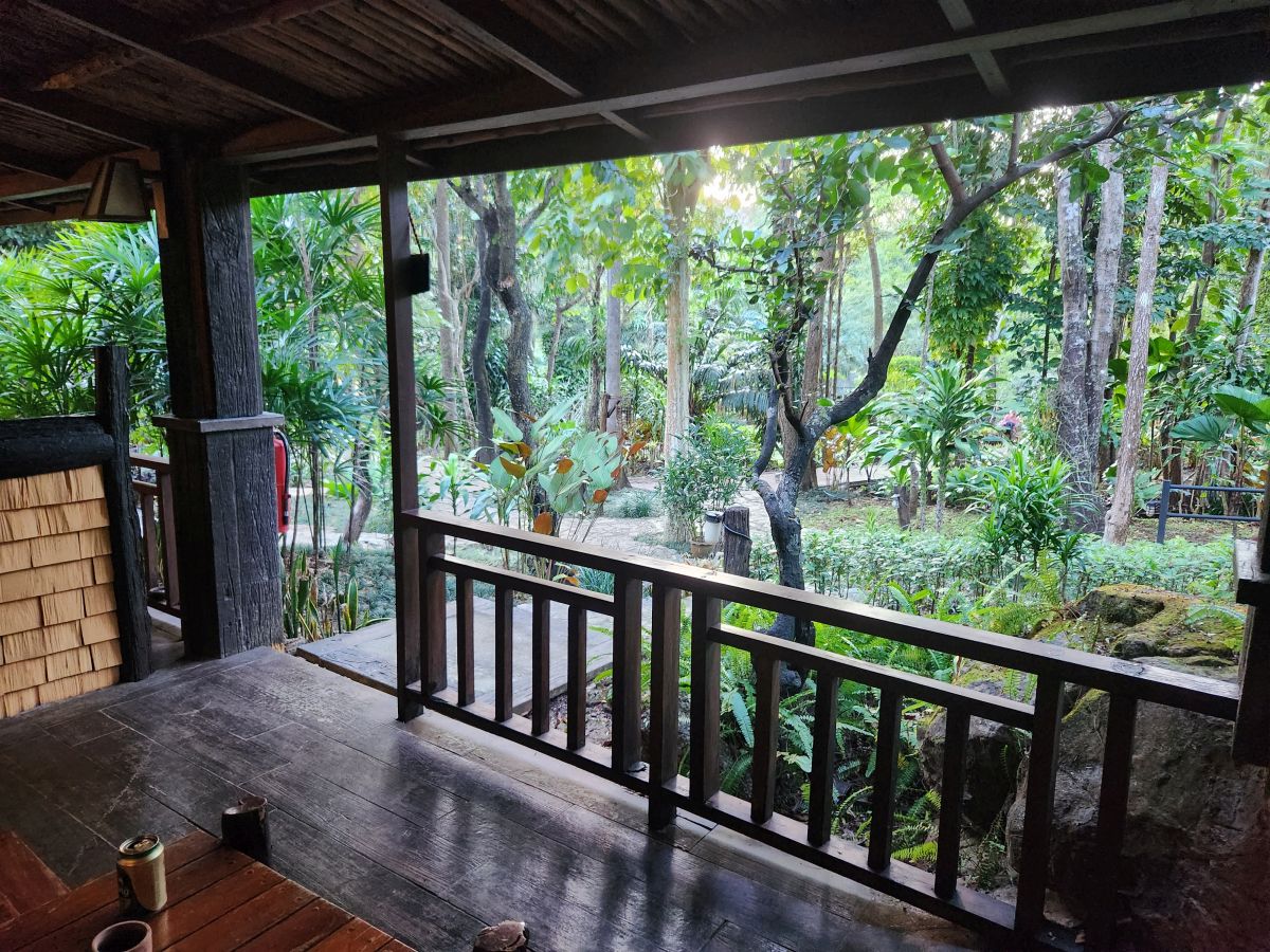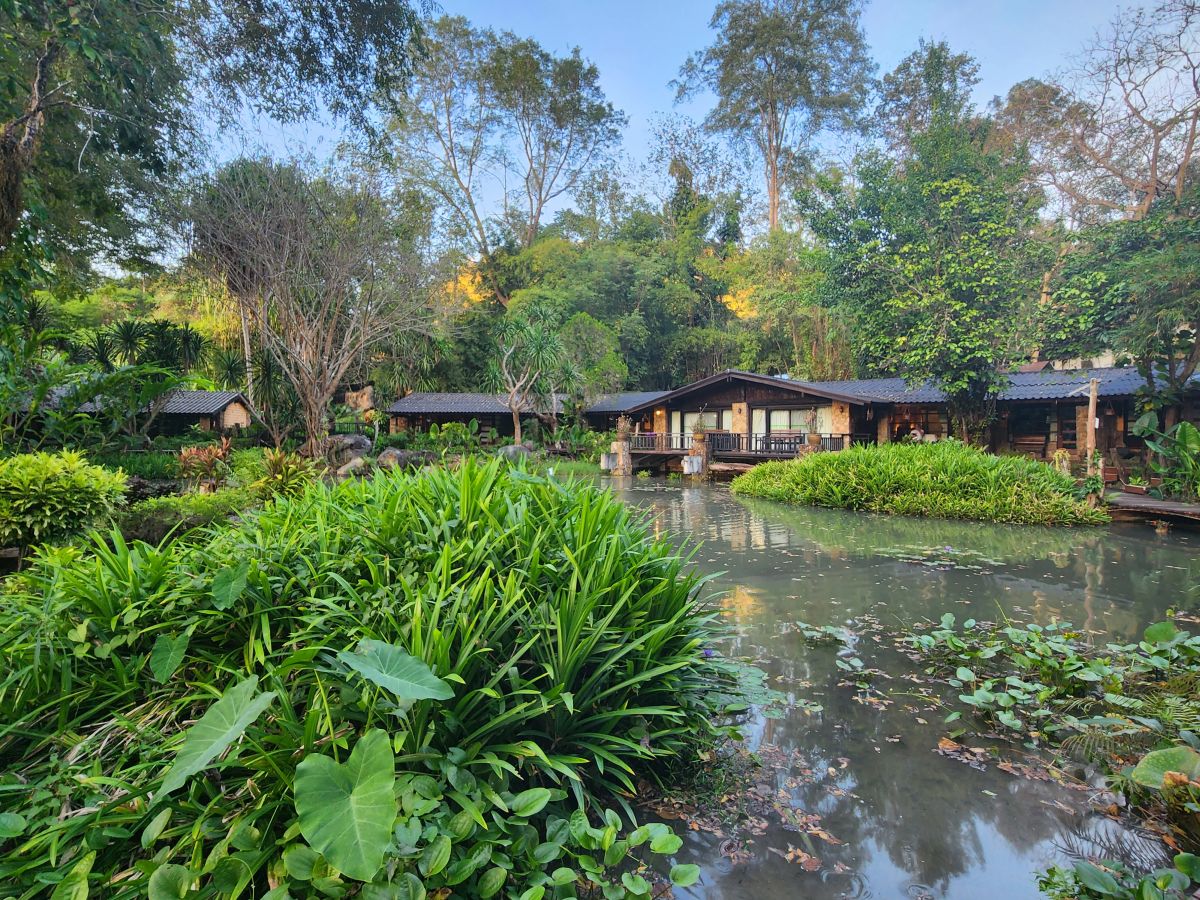 The resort, which btw, Odum had driven out to last week (over 3 hours each way from Bangkok) to check it out when he knew we were staying here) was beautiful. First of all, we had to leave the bus at the top of the entrance drive and take Songthaews down to the resort, because the road is a mile long, all down hill and dirt. No way the bus could make it! The lobby is all open air, and after we are assigned our rooms and get our keys we go out to search for our rooms. All the rooms are in little adjoined cabins were situated around heavily planted gardens and lotus ponds, with little bridges crossing the water and flagstone paths. And huge covered porches. So great. And the rooms were huge and really well equipped. This will be a wonderful 2 days here.