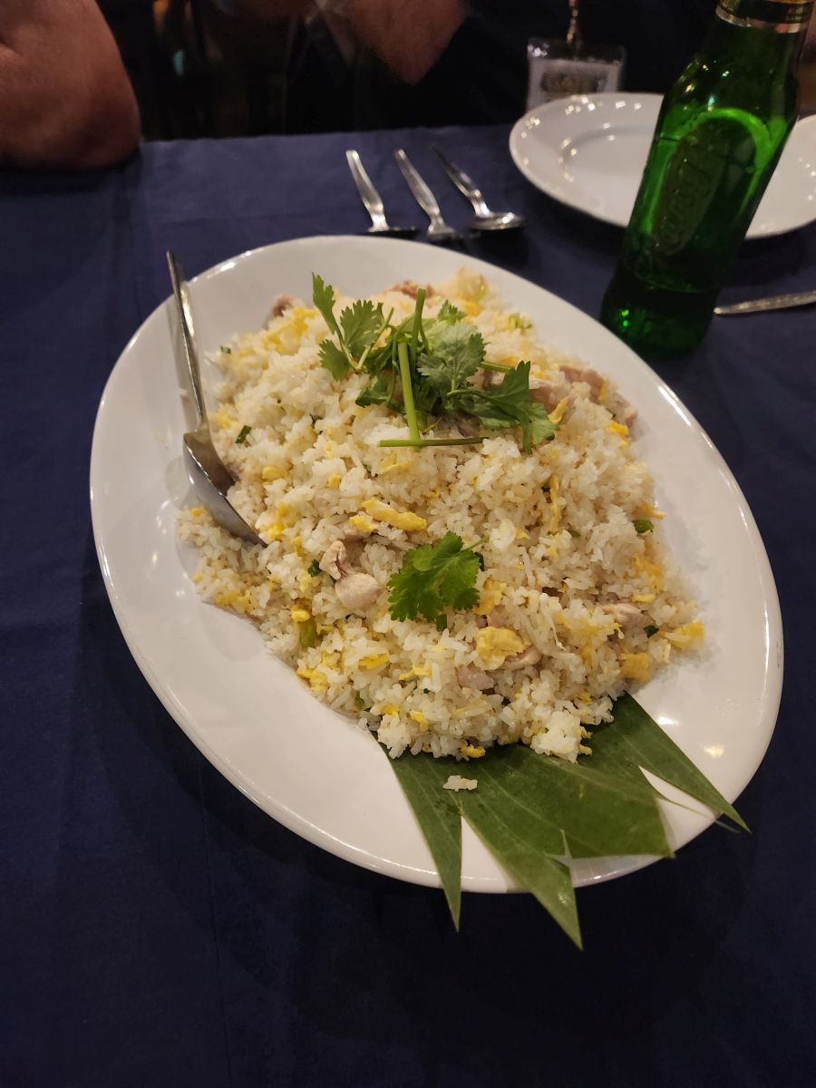 Tonight, dinner is in the open air restaurant above the river, and served family style for the whole group. Tables are set up in 6 tops, and we take the end of one table near the fan. It might be by the river, but it is till hot. A little kerfluffle ensued when the Russians came down, late of course, and then made a stink because they couldn’t sit together. Sigh. then get here on time! Anyhow, we were alone at our table, so we just moved and sat with two other couples . Fine by us, we had a more enjoyable evening without them – you can be certain of that!