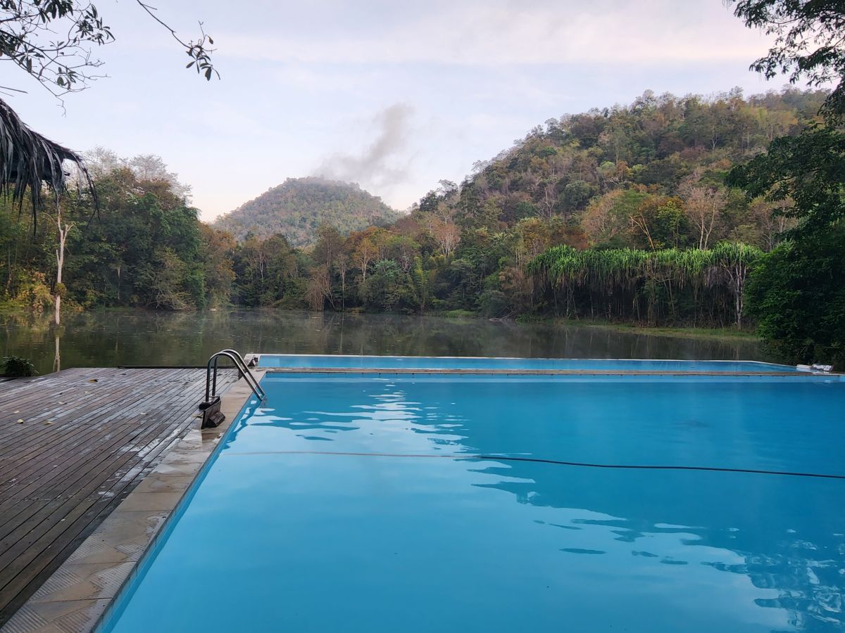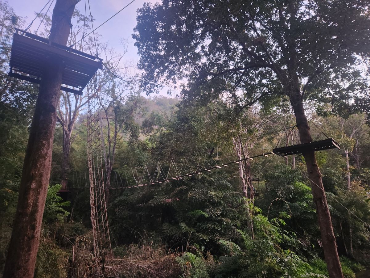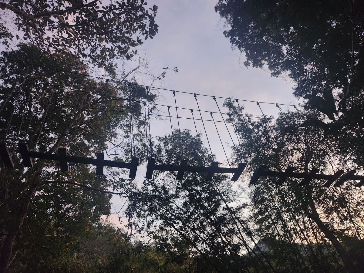 We are up and out early this morning, first for a lovely walk around the resort in the daylight. There is a trail that winds up around the lake, through the zipline which looks really scary and sort of rickety. Yeah, we’re happy on the ground level here! The path winds up and into the woods, but not knowing exactly where it goes, we circle back around the lake, over to the infinity pool (which was packed yesterday afternoon) and then back for a shower and breakfast. Nice morning walk.