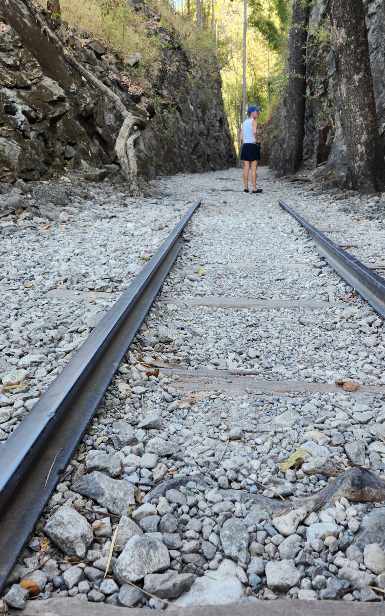 The beauty that surrounds this place is surreal. Even though there are placards that say the vistas gave prisoners time to reflect and find comfort in the natural beauty, it is hard to believe they were able to do this when you stand here between the rails – uncovered in the ’80s after ex-POW Australians started a project to uncover the railway they had toiled upon during WWII – looking up at those steep, high walls of stone, knowing that men had to dig this out by hand is pretty overwhelming. The depth of human cruelty in the quest for power. Sad and scary all at once.