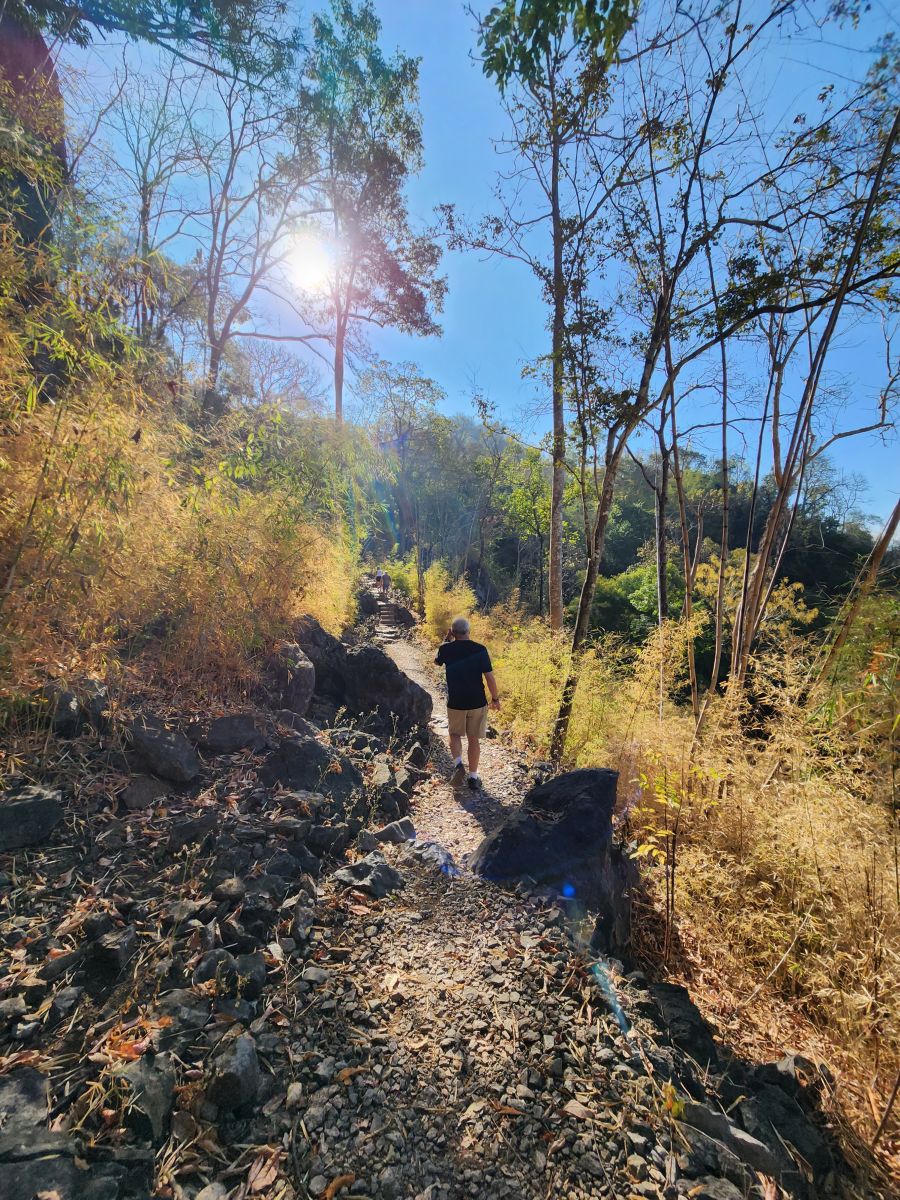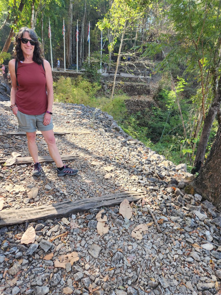 We continue through the pass and walk a ways down the rail bed. There is no evidence of the railway here except for the pathway cut through the jungle along this rugged cliff above the Khwae Noi Valley. It’s beautiful and peaceful, even given its history, and we could walk for hours on this trail. But sadly, that is not to be because of course, we’re on a tour! We have a time limit.